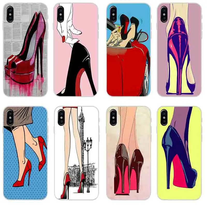 Для iphone 7 6S 6 8 Plus 5 5S 5C SE X XR XS Max 4 4S чехол мягкий TPU силиконовый чехол для телефона Ретро Женская обувь на высоком каблуке искусство подходит для защиты мобильный телефон аксессуары мобильный телефон чехлы