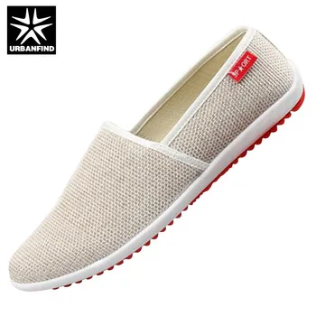 URBANFIND/дышащие мужские туфли на плоской подошве из пеньки; модные уличные туфли; Повседневный стиль; светильник; мягкая Мужская Летняя обувь; европейские размеры 39-44