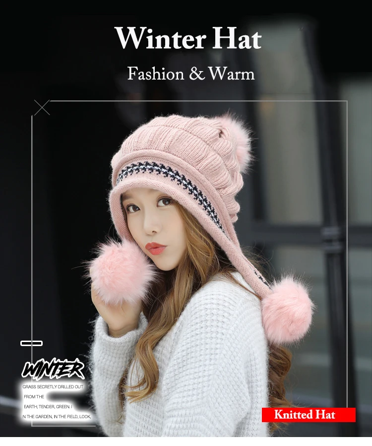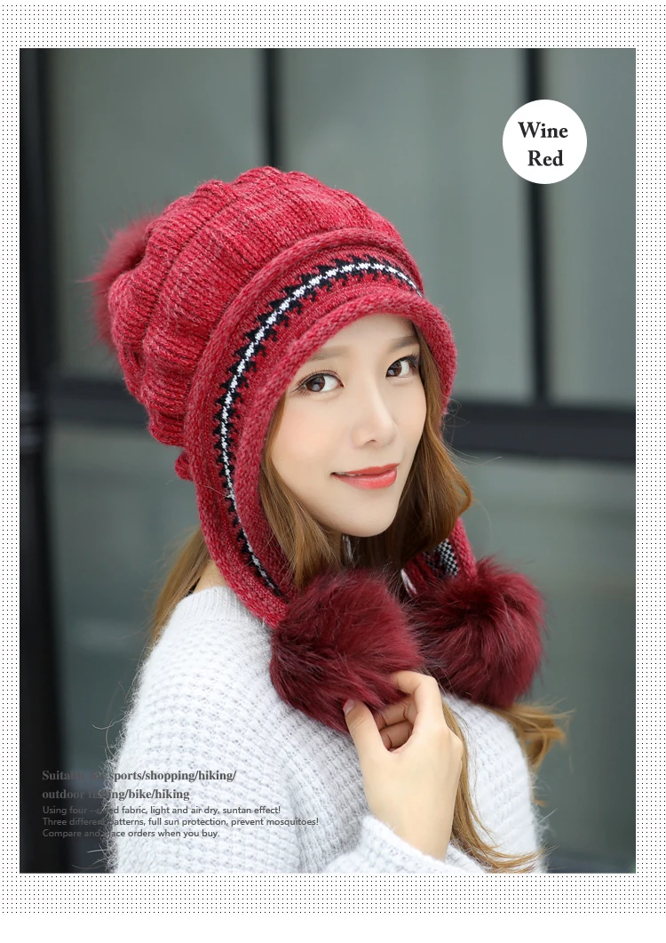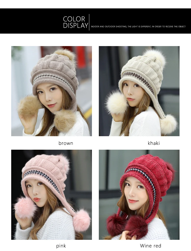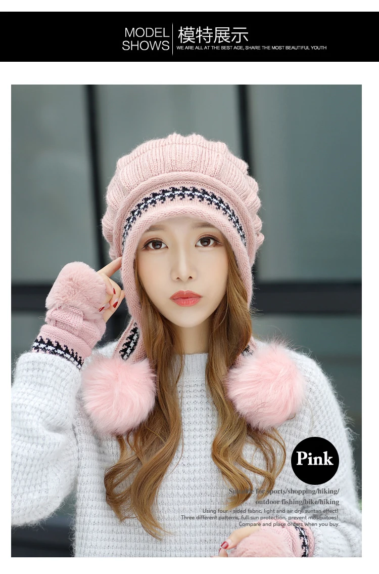 Модная Зимняя Шапка-бини из 2 предметов, комплект перчаток, 3 меховых шапки, теплые зимние вязаные крючком шерстяные шапки, однотонная шапка для женщин