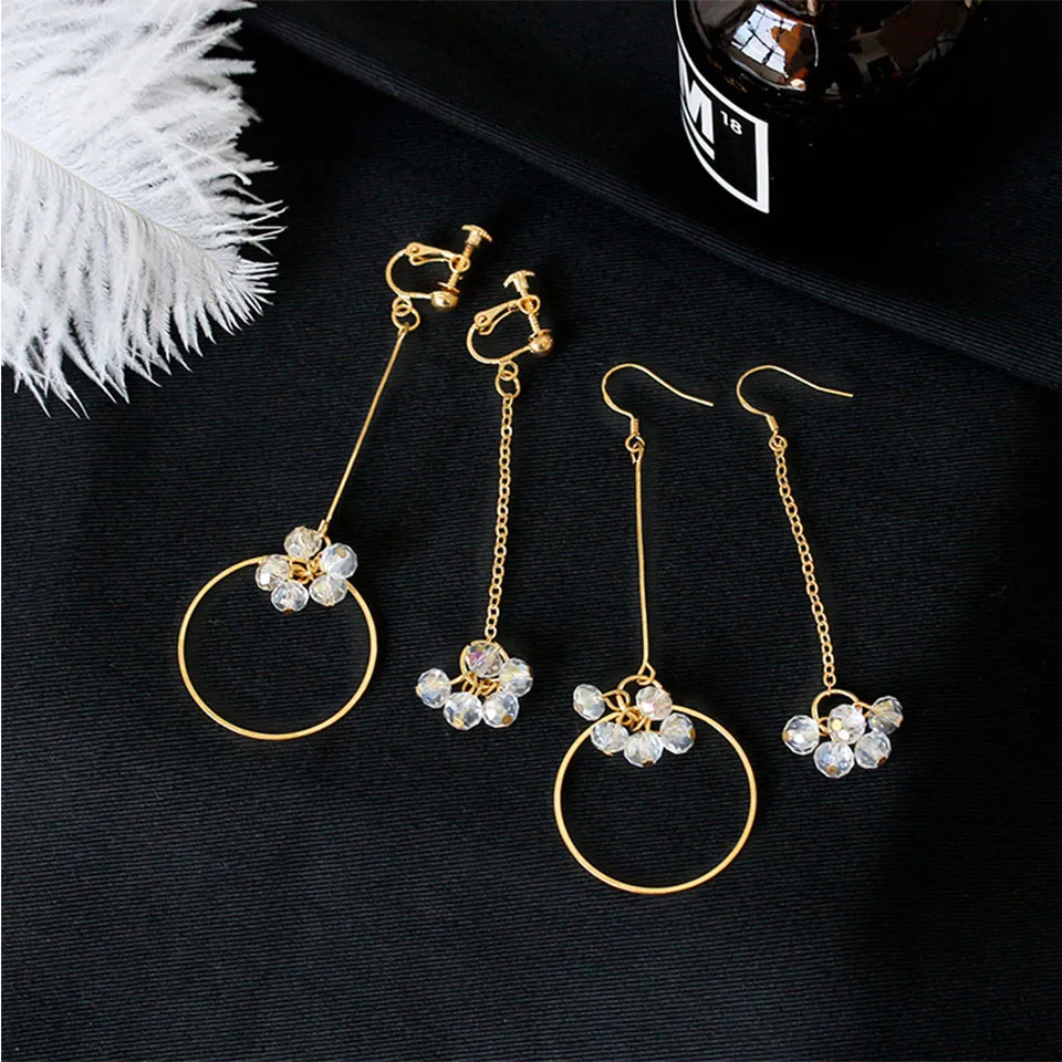 Модные висячие серьги с кисточками для женщин, асимметричные серьги с кристаллами, цветочные серьги-клипсы, ювелирные серьги оптом вечерние подарки