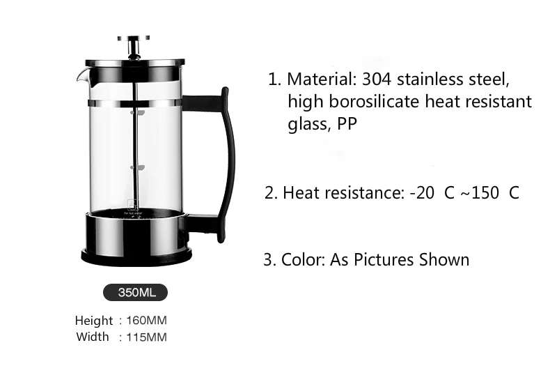350 мл Малый Объем Черный Хо использовать держать использовать нержавеющая сталь стекло французский давление горшок фильтр кофейник кофе чайник Инструмент для кофе