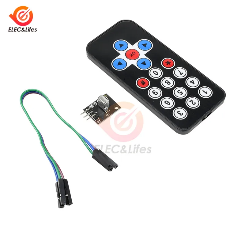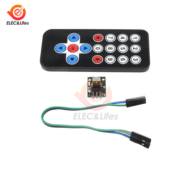 Последний Инфракрасный Комплект беспроводного дистанционного управления состоит из мини-тонкого ИК-пульта 38 кГц и инфракрасных приемников, мини-тонкого инфракрасного пульта дистанционного управления с 17 функциональными клавишами, расстояние стрельбы до 8 метров, идеально подходит для различных устройств в комнате управления. Модуль ИК-приемника может получить стандартный сигнал 38 кГц модуляции дистанционного управления, через программирование, вы можете достичь дистанционного управления декодирования сигнала, который может производить различные роботы дистанционного управления и интерактивные работы.