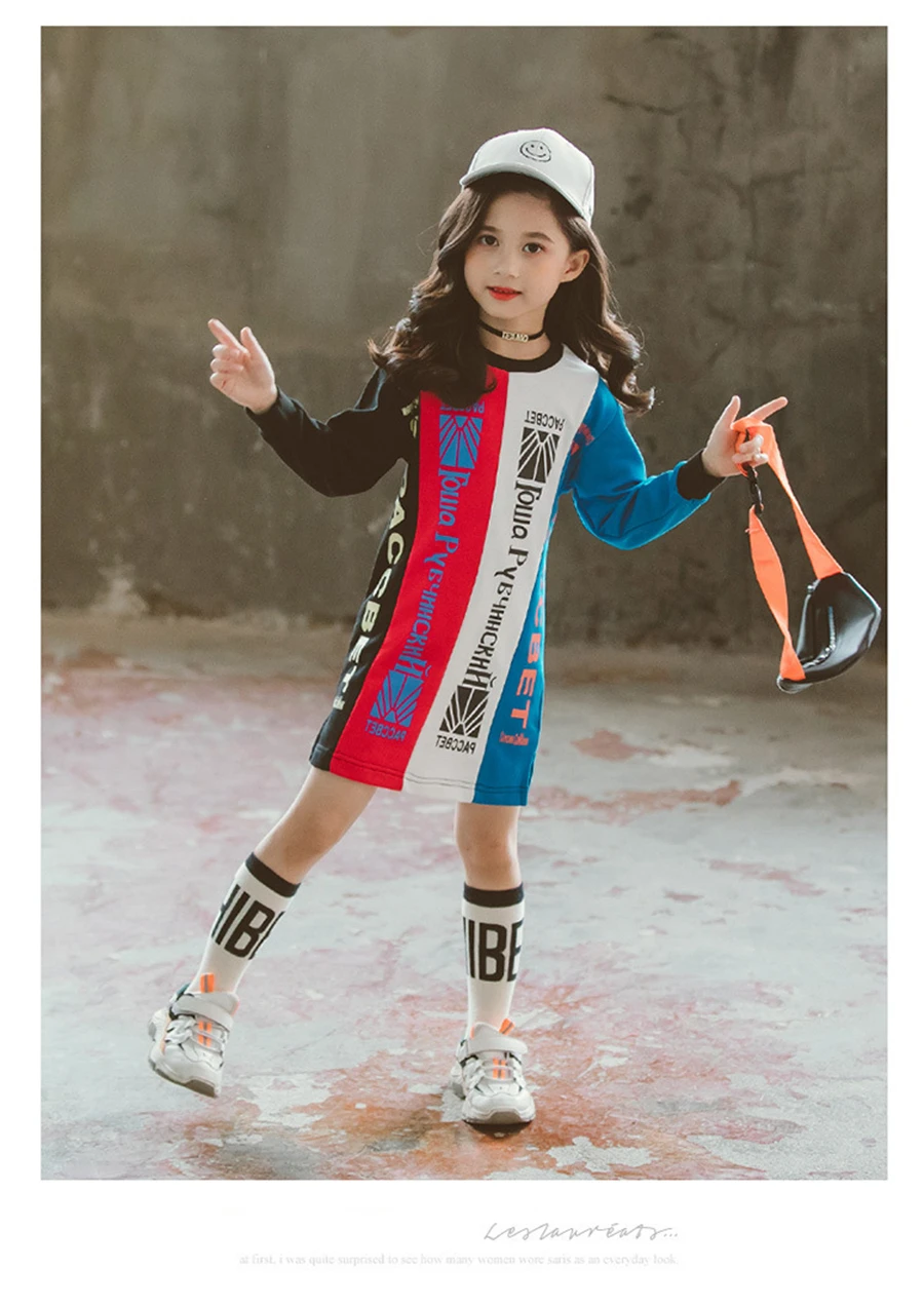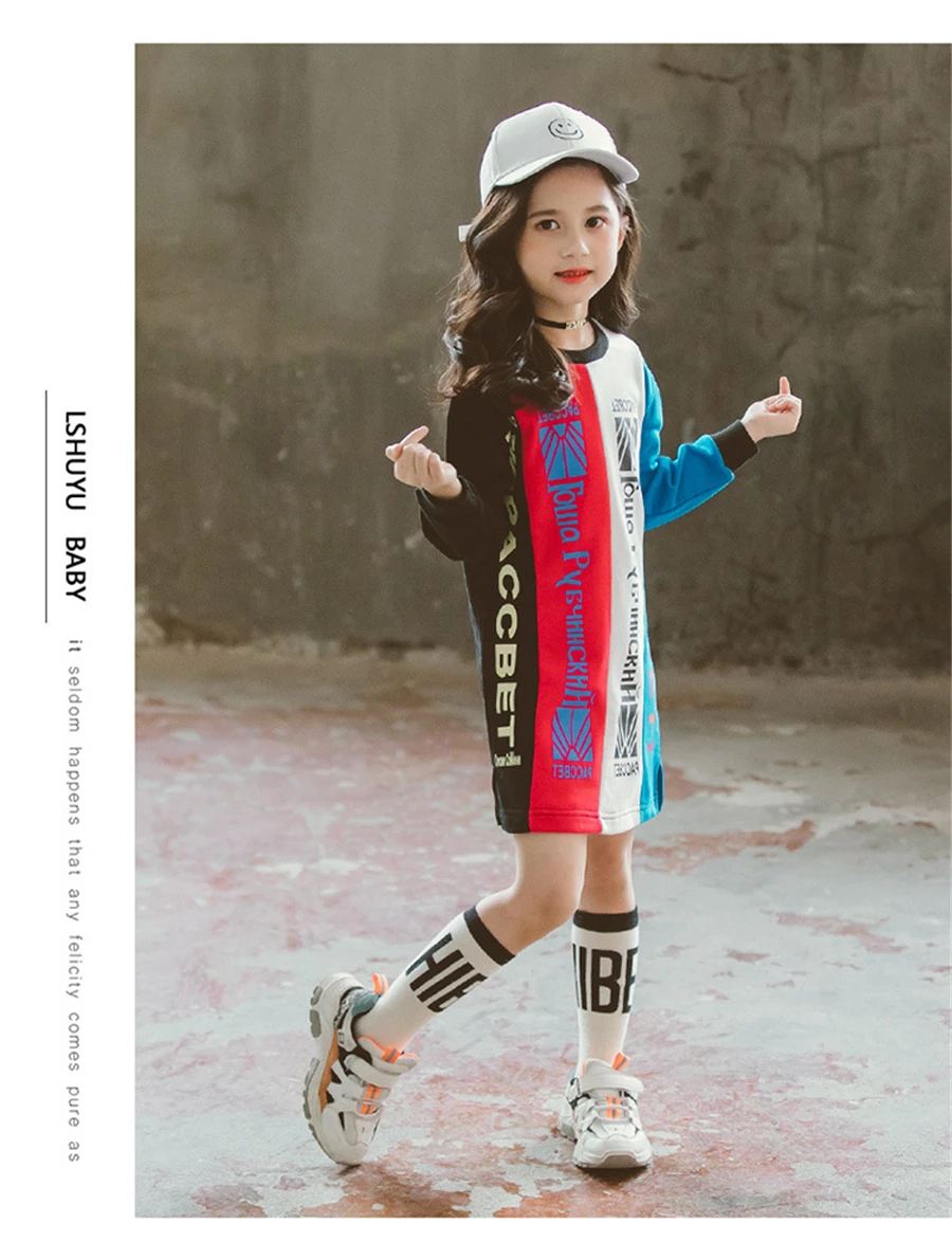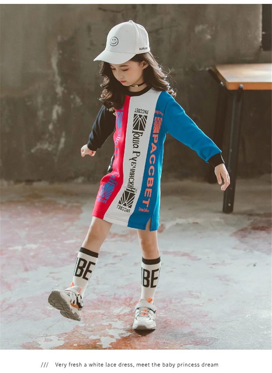 children's sweatshirt dress without hoodie fashion letter print knee length girls dresses long sleeve 4-14Y baby girls clothes