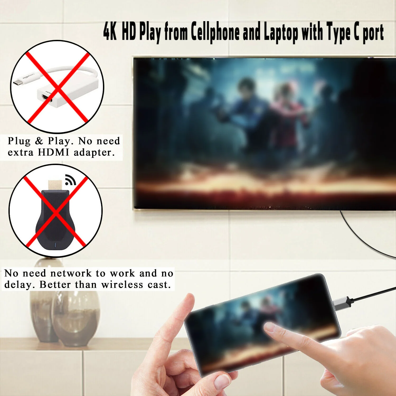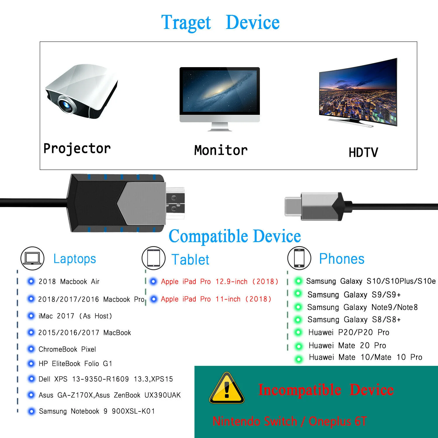 * Этот кабель типа C-HDMI позволяет передавать содержимое с вашего устройства на внешний дисплей, который принимает HDMI соединение, например, телевизор, монитор, проектор и т. Д.
