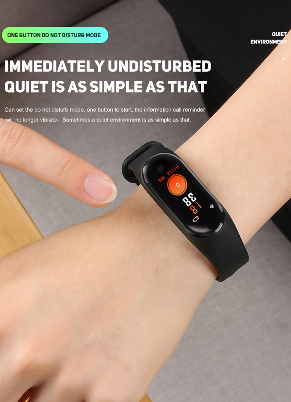 Время: Время, дата, оставшаяся мощность показаны на циферблате часов. (Как только смарт-браслет подключен к устройству, время будет синхронизировано с временем устройства. Время не может быть Установите на смарт-браслет). Статус режима: Запись шагов пользователя ежедневно, расстояние ходьбы, потребление калорий. Измерение частоты сердечных сокращений: Измерьте частоту сердечных сокращений или Измерьте частоту сердечных сокращений вручную. Нажмите и удерживайте, чтобы войти в интерфейс измерения сердечного ритма. Измерение артериального давления: Измерьте артериальное давление ежечасно или Измерьте артериальное давление вручную. Нажмите и удерживайте, чтобы войти в интерфейс измерения артериального давления. Измерение уровня кислорода в крови: Измерение кислорода в крови ежечасно, или измерение кислорода в крови вручную. Нажмите и удерживайте, чтобы войти в измерение уровня кислорода в крови. Спортивный режим: Нажмите и удерживайте на интерфейсе спортивного режима, чтобы перейти на страницу выбора спорта. Есть пять различных спортивных режимов для выбора. Бег в помещении, бег на открытом воздухе, езда на велосипеде, спортивная ходьба и режимы упражнений. Нажмите и удерживайте в режиме, чтобы начать запись времени упражнений, сожженных калорий. Нажмите, чтобы сделать паузу, нажмите и удерживайте, чтобы вернуть. Погодные условия: Погодные условия в реальном времени будут синхронизированы с данными вашего устройства и отображены на интерфейсе отображения времени. Смарт-браслет должен быть подключен к приложению, и функция GPS устройства должна включаться. Подробнее: Не беспокоить (нажмите и удерживайте, чтобы отменить или включить вибрацию), музыка (нажмите и удерживайте, чтобы войти в панель управления музыкой, нажмите, чтобы переключиться, нажмите и удерживайте, чтобы подтвердить), таймер (нажмите и удерживайте, чтобы ввести таймер, нажмите, чтобы приостановить или начать) Параметры: Выключите (нажмите и удерживайте, чтобы выключить, нажмите, чтобы переключить), сброс (нажмите и удерживайте, чтобы сбросить, нажмите, чтобы переключиться), примерно (нажмите и удерживайте, чтобы проверить версию прошивки, MAC адрес, нажмите и удерживайте, чтобы вернуть или вернуть через пять секунд) Прочие ожерелья и подвески: Оповещение о зарядке, напоминание о тревоге, напоминание о сидячем положении, отображение входящих вызовов, встряхивание для фотографирования, обновление системы, WeChat/whatsAPP/Facebook/Twitter/уведомление о текстовых сообщениях Об аксессуарах: 1*1 коробка 1*1 зарядное устройство 1*1 Руководство пользователя По поводу батареи: Время работы в режиме ожидания: 5-7 дней Продолжительность использования: 2-5 дней