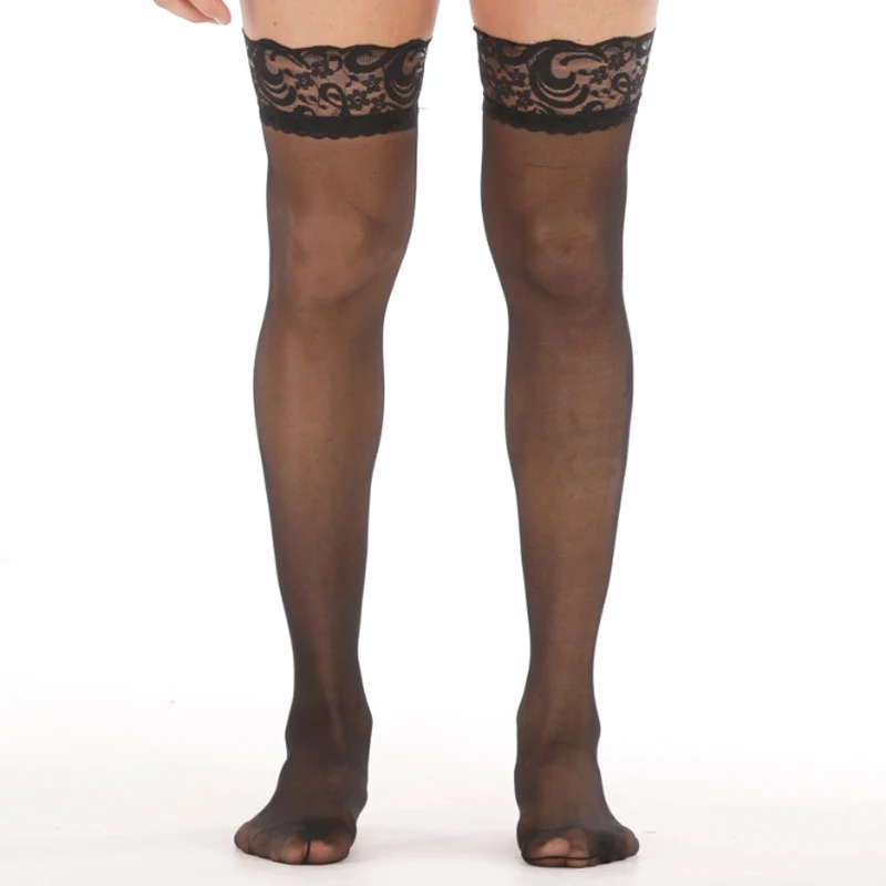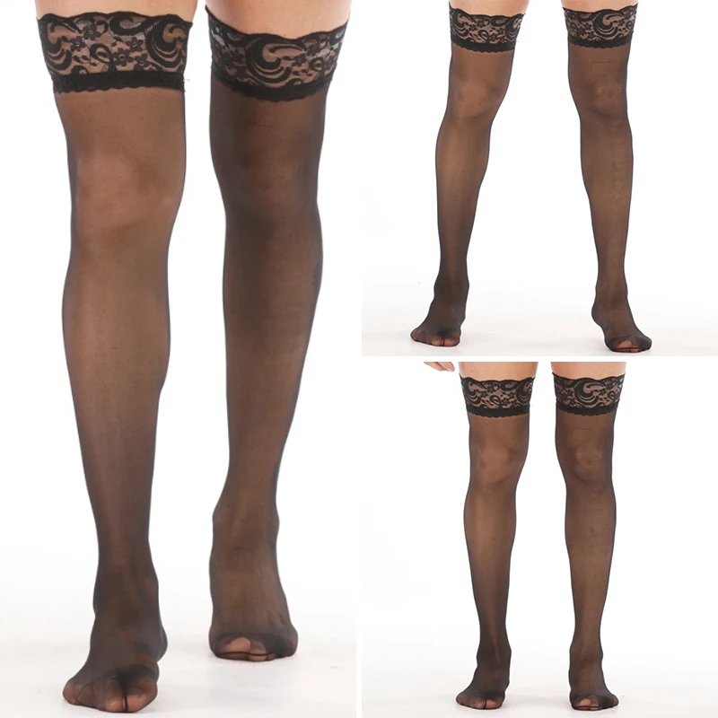 * Описание товара: мужские носки модные сексуальные с кружевной сеткой полые длинные чулки повседневные Черные