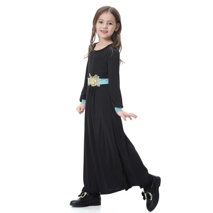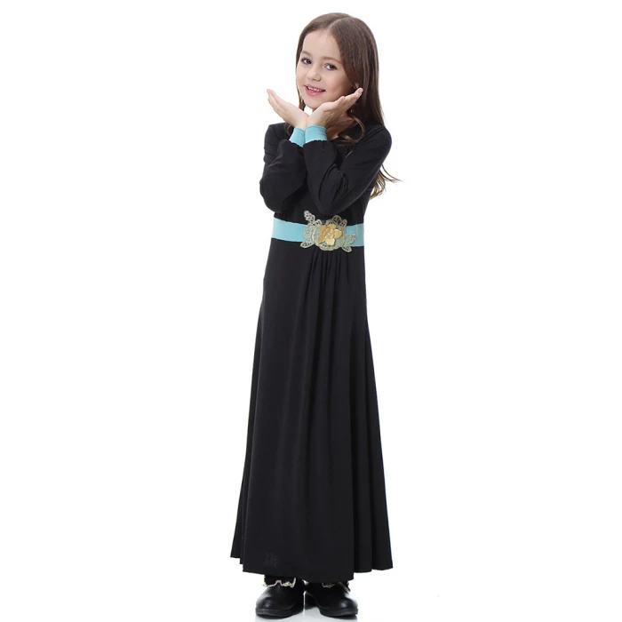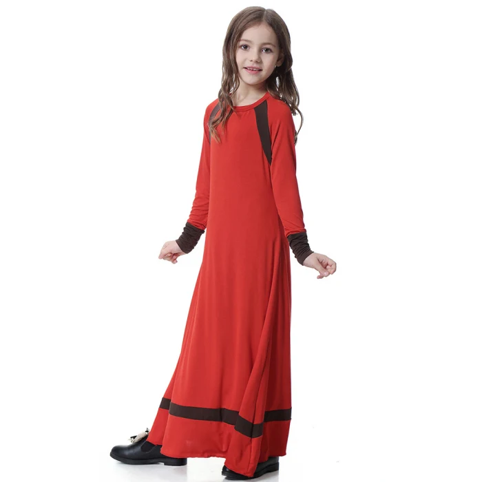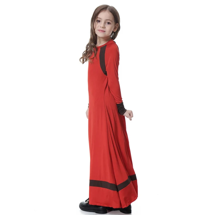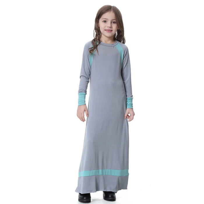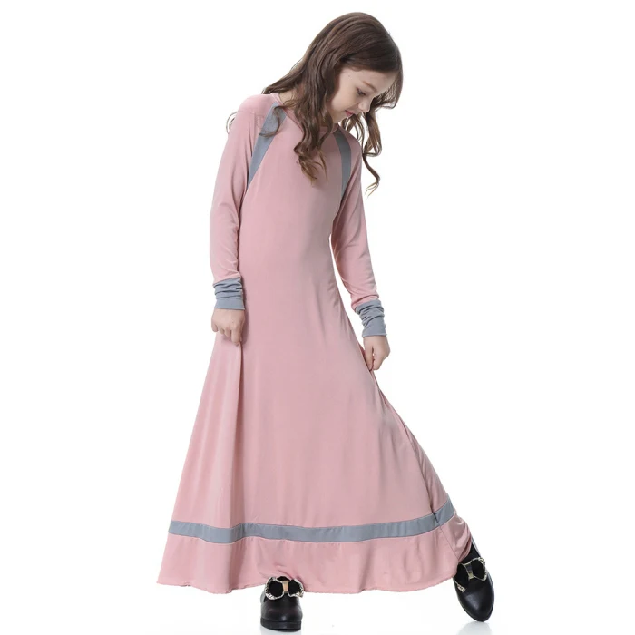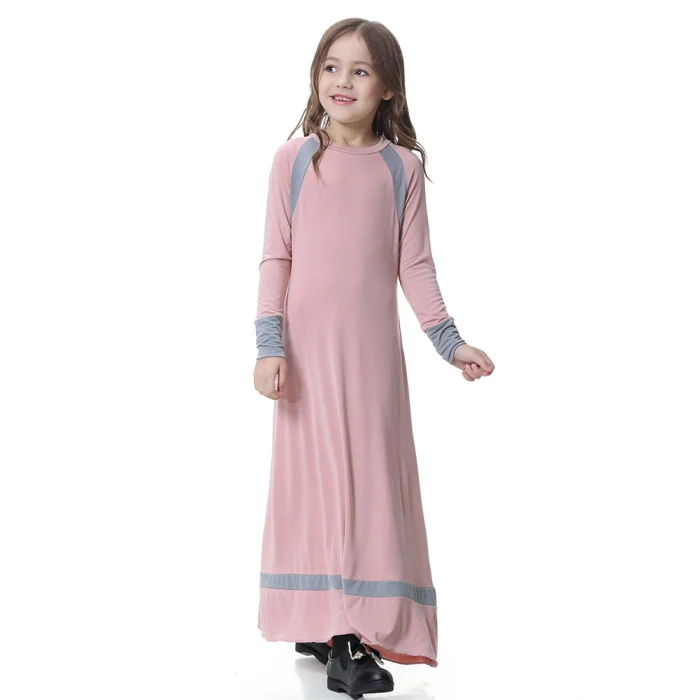 Цельнокроеное платье для сна для девочек; однотонное мусульманское платье для сна с длинными рукавами; JS25