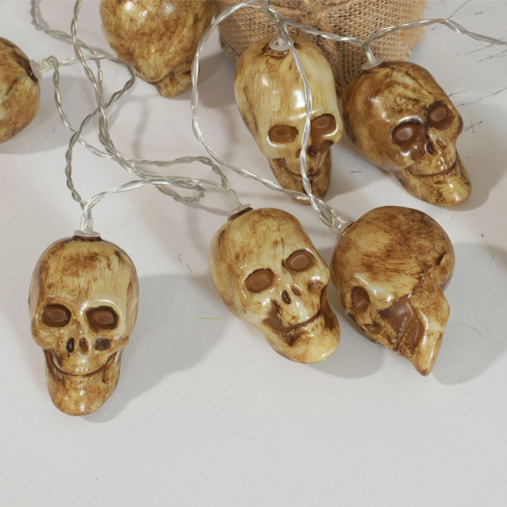 10 LED Warm White LED Fairy Lights Skull String Light Ghost Skull Decorative Lights Fairy LED Garland Outdoor Indoor Decoration