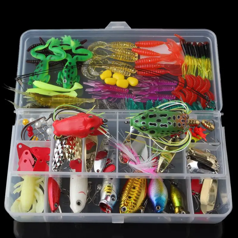 Этот набор приманки-это яркие рыболовные приманки, острые Крючки и различные рыболовные снасти, что делает его мощным рыбацким соблазнительным