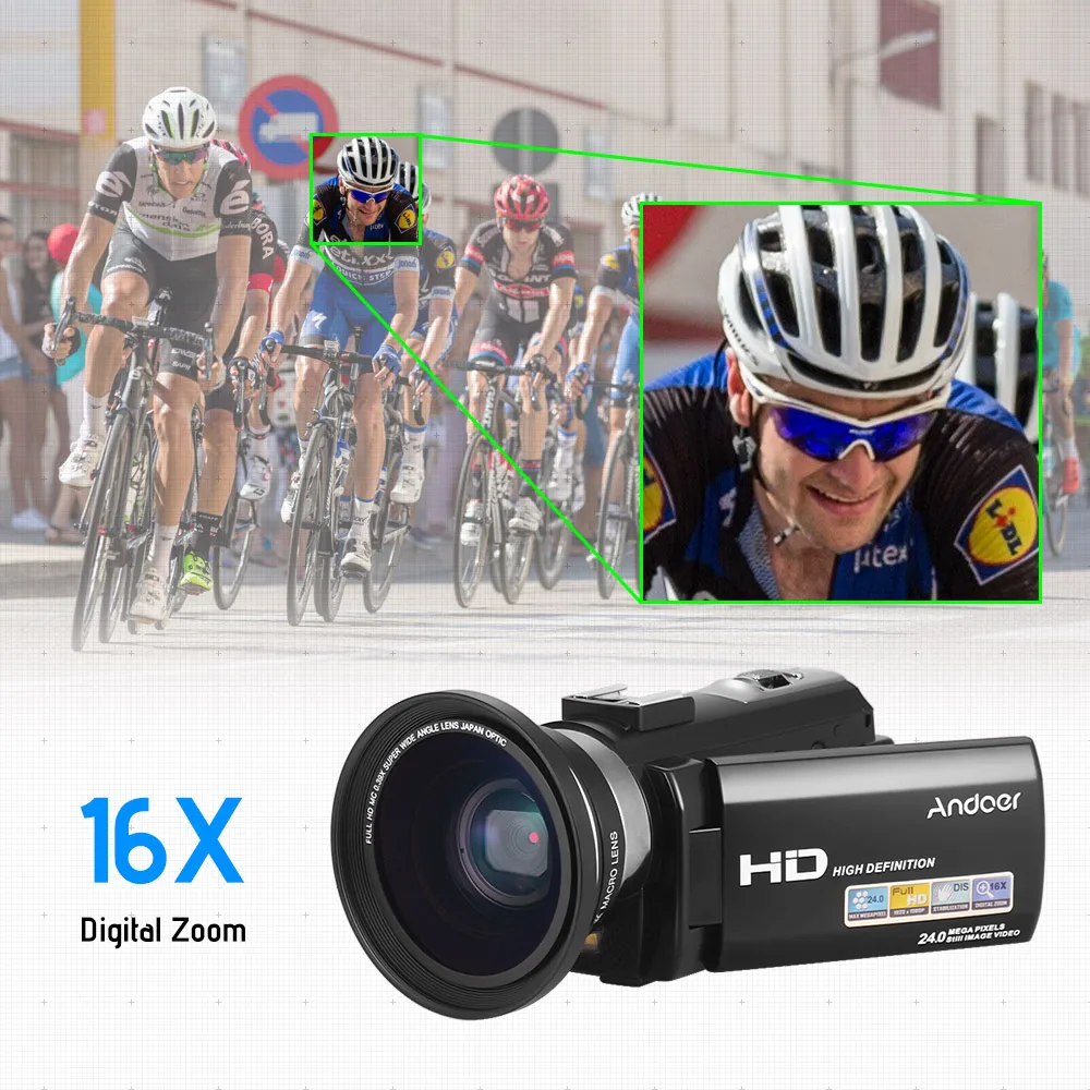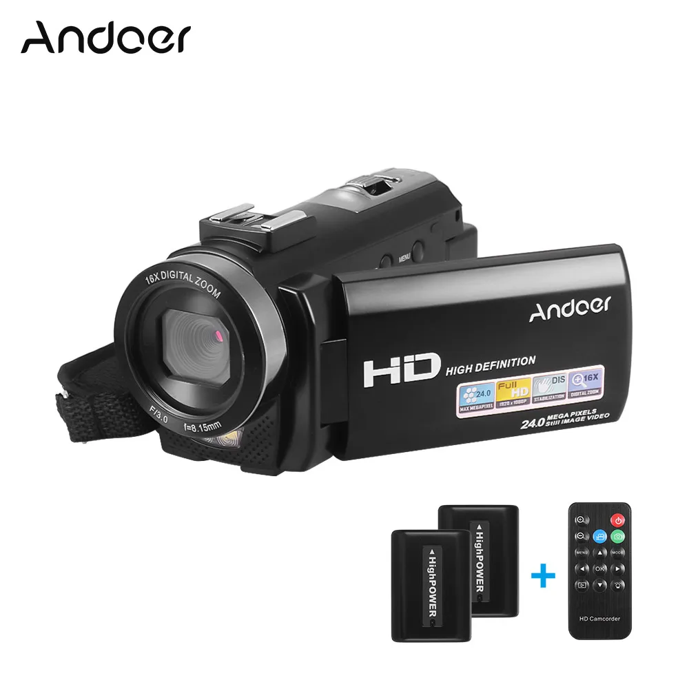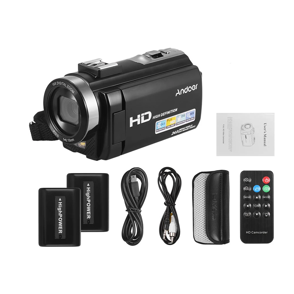 Andoer HDV-201LM 1080P FHD Цифровая видеокамера DV Recorder 24MP 16X цифровой зум 3,0 дюймовый ЖК-экран с 2 перезаряжаемыми батареями