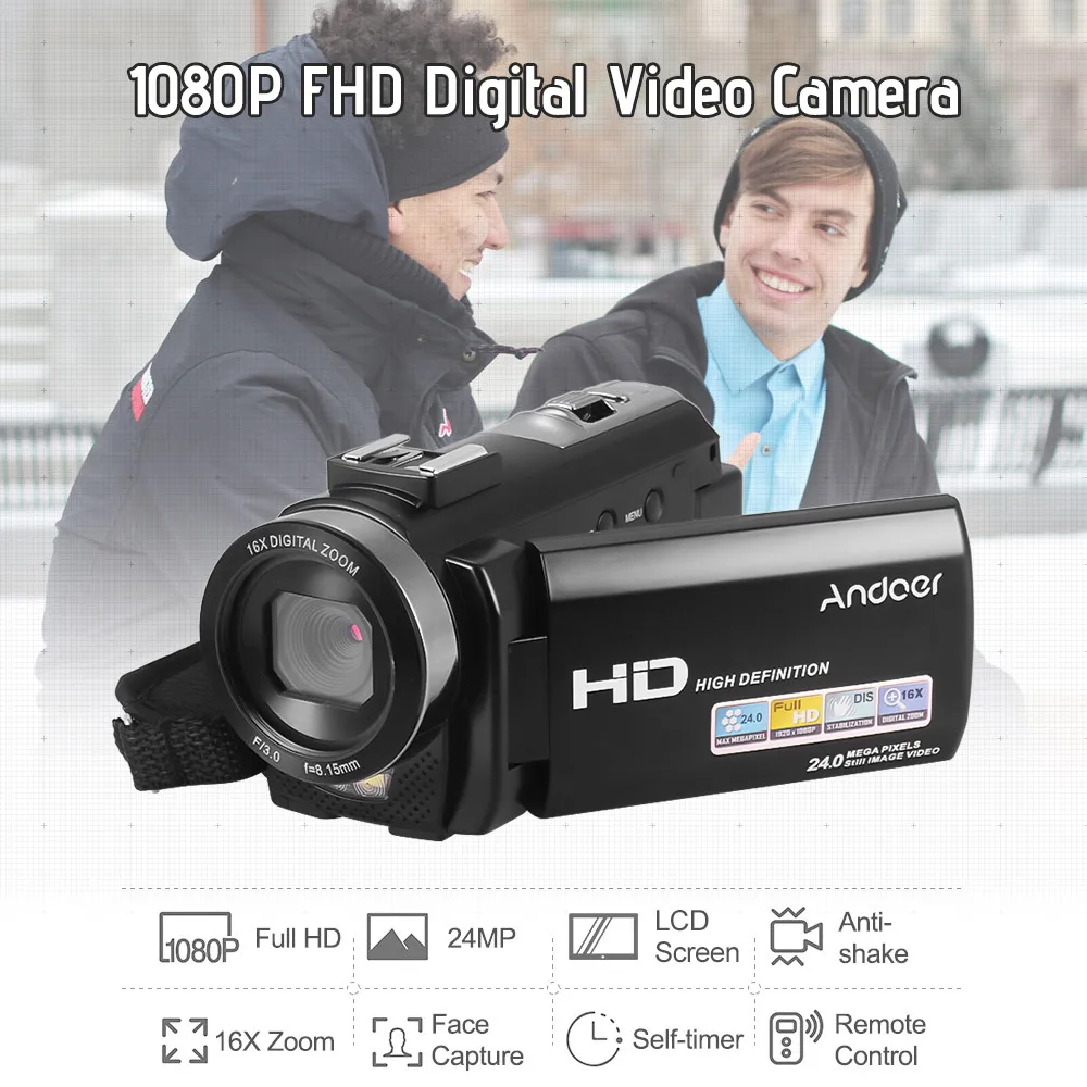 Портативная Цифровая видеокамера Andoer 1080P FHD, отличный подарок на фестиваль/день рождения для семьи, друзей и коллег, может делать фотографии и записывать видео, чтобы сохранять хорошие воспоминания между вами и людьми, которых вы любите.