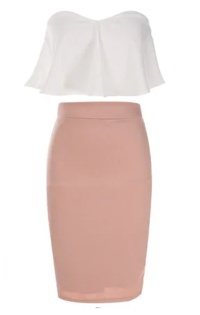Женский комплект из 2 предметов, однотонные топы с открытыми плечами на шнуровке и облегающая юбка, Клубные вечерние костюмы, новинка 2019