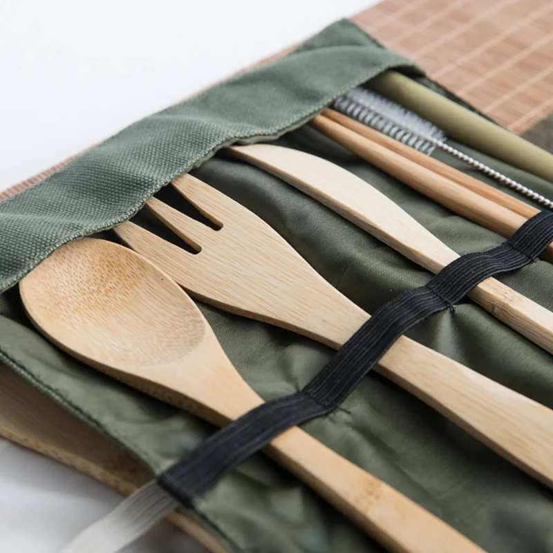 <Портативный: В комплект входит легкая сумка, удерживает бамбуковую дорожную утварь и облегчает переноску.