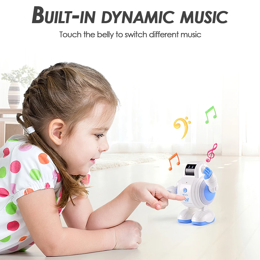 Режим музыки: прикоснитесь к головке робота, чтобы воспроизводить волшебный звук, 5 звуков. Прикоснитесь к животу, чтобы воспроизводить миди-музыку, 8 звуков. Пение и танцы с помощью прохладной музыки, это сделает детей самым крутым парнем в космосе.