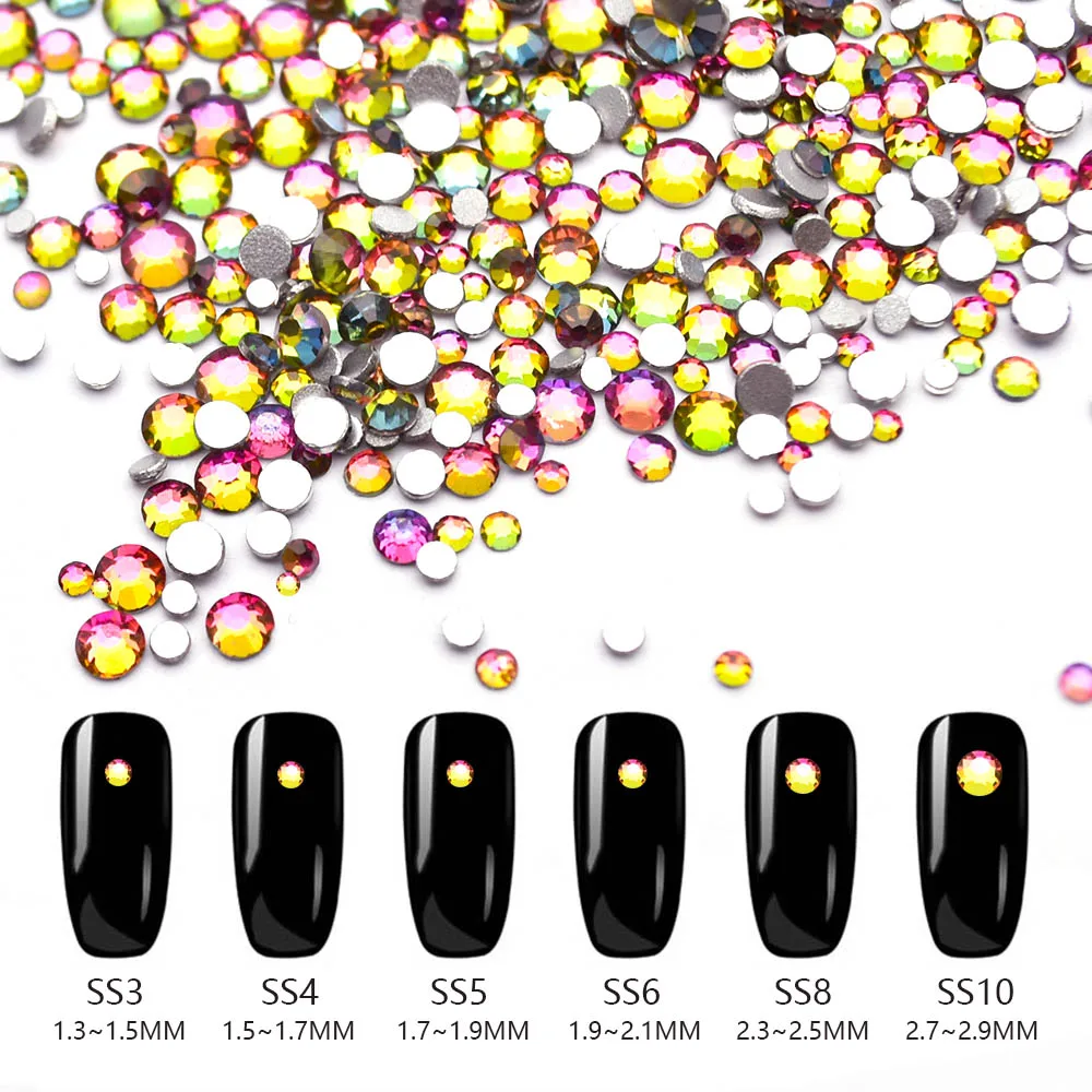 SS3 ~ SS10 Стразы смешанного размера с пламенем для ногтей с плоской задней частью, Кристальные стразы, 3D Шарм, сделай сам, маникюр, дизайн ногтей, украшения MJZ2163