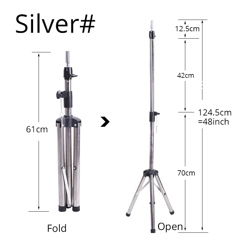 Параметры продукта: Товар: штатив парикмахерский стенд для парика Материал: алюминиевый сплав Небольшой стиль, высота в сложенном виде: прибл. 15 дюймов/40 см Малый стиль Максимальная высота: прибл. 29 дюймов/74 см Посылка небольшого размера: прибл. 45*14*14 см Небольшая посылка, Вес: прибл. 1200 г Большой стиль, высота в сложенном виде: прибл. 24 дюйма/61 см Большой стиль Максимальная высота: прибл. 48 дюймов/124,5 см Посылка большого размера: прибл. 57*13*13 см Посылка в большом стиле; Вес: около 1500 г Описание товара: 1. Подходит для студентов косметологии или кого-либо для практики резки, плетения, создания тренировочных волос 2. Высокое качество, красивый и удобный, идеально подходит для студентов, парикмахеров, салонов, домашних пользователей и т. Д. 3. Практический лучший способ стрижки волос: всего 2 шага, вы можете продлить этот штатив до максимальной высоты. Сначала откройте штатив, а затем поверните винт, Отрегулируйте высоту по своему желанию. 4. Безопасный манекен головы тренировки на месте. 5. Поставляется с сумкой для переноски, легко носить с собой. 6. Очень прочный и прочный, для повышения стабильности штатива предусмотрен стабилизатор штатива. 6. Идеально подходит для использования с насадками для тренировки волос. 7. Эта подставка для штатива изготовлена из алюминиевого сплава, что дороже, чем вес металлического утюга и светильник.