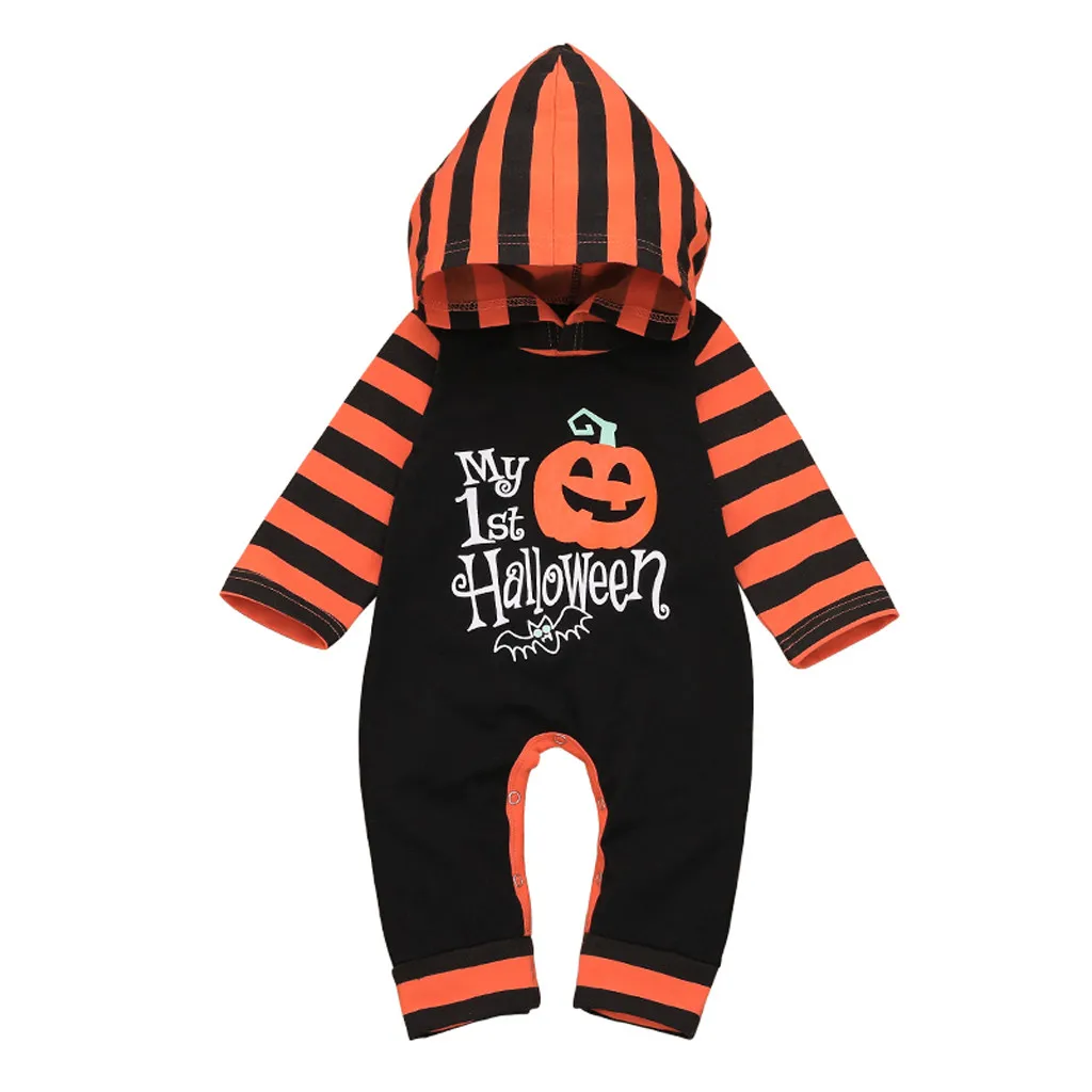 Комбинезон в полоску с капюшоном для новорожденных мальчиков и девочек на Хэллоуин