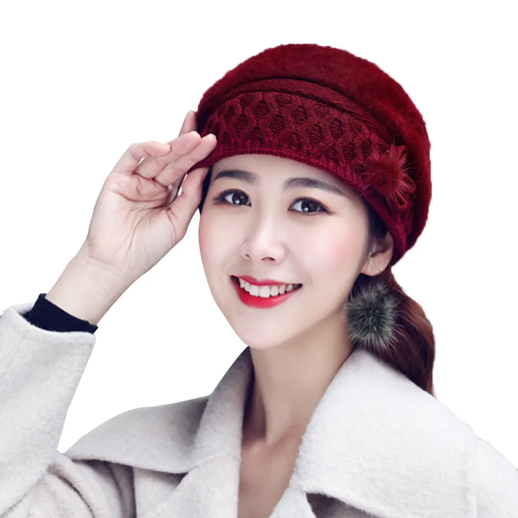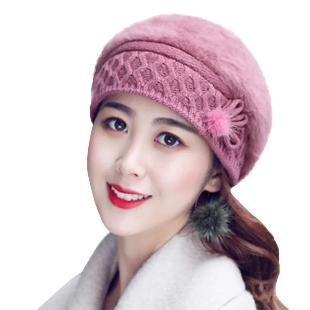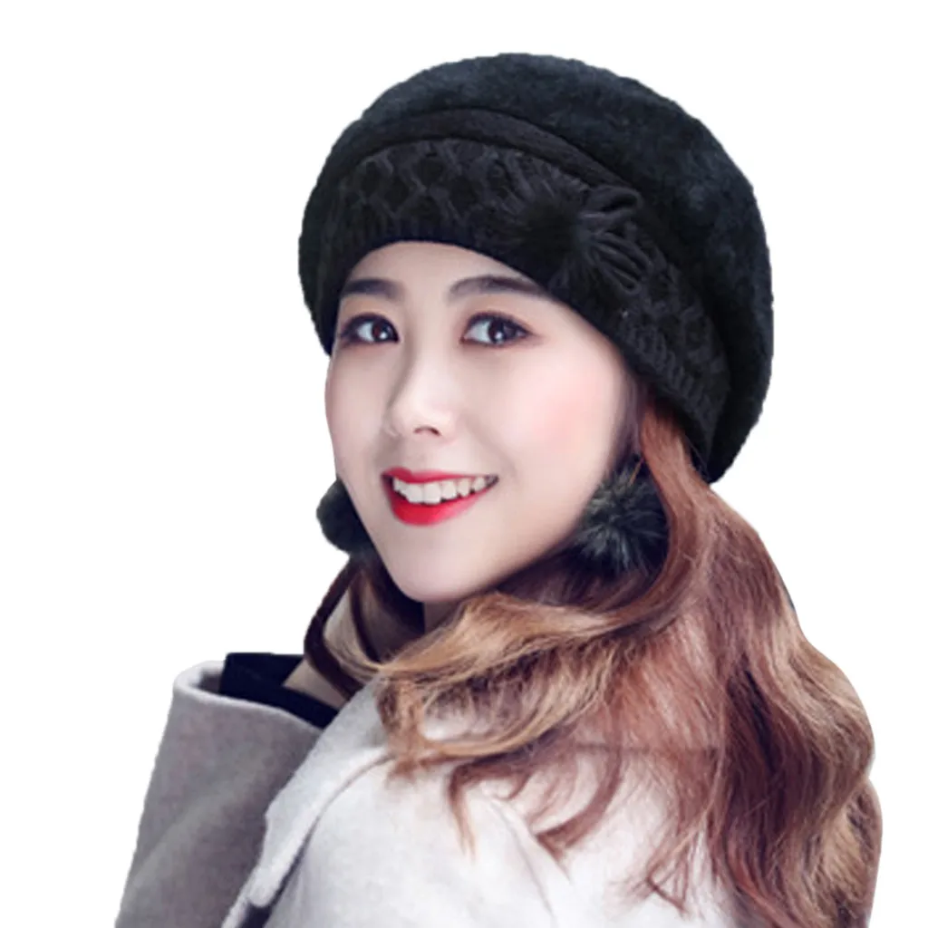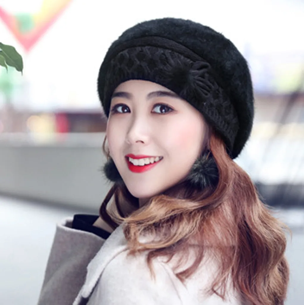 Женская зимняя теплая шапка с бантиком берет плетеная мешковатая вязаная крючком Шапка Лыжная Шапка Кепка