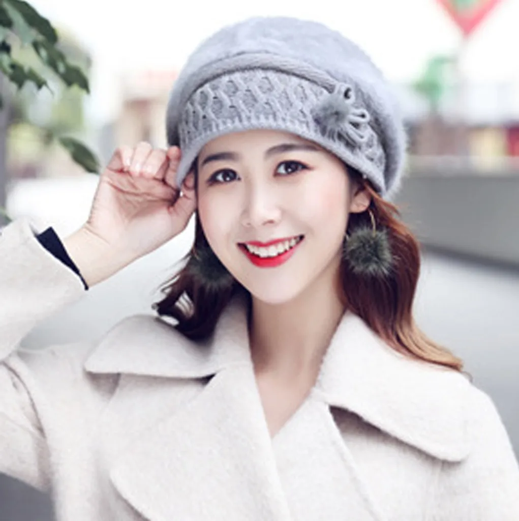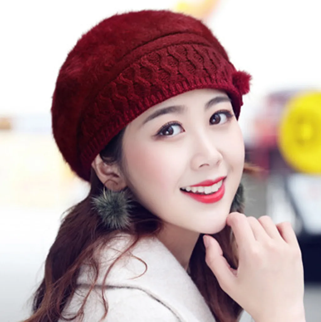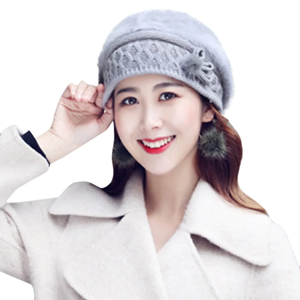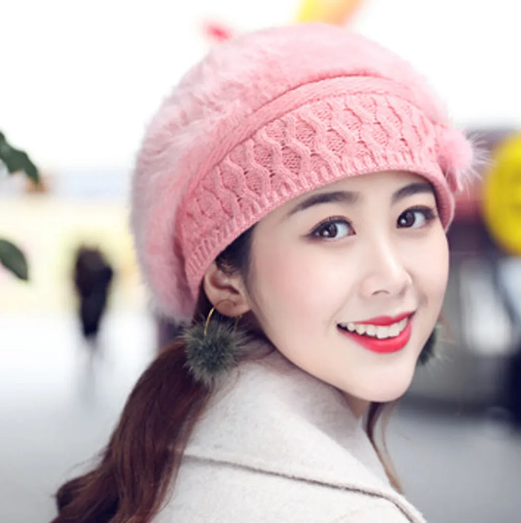 Женская зимняя теплая шапка с бантиком берет плетеная мешковатая вязаная крючком Шапка Лыжная Шапка Кепка