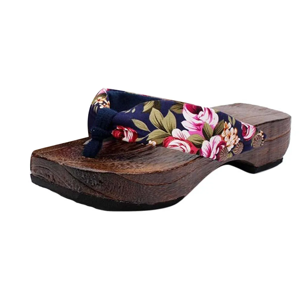 Летняя обувь на платформе; деревянные женские сандалии; деревянные шлепанцы; вьетнамки
