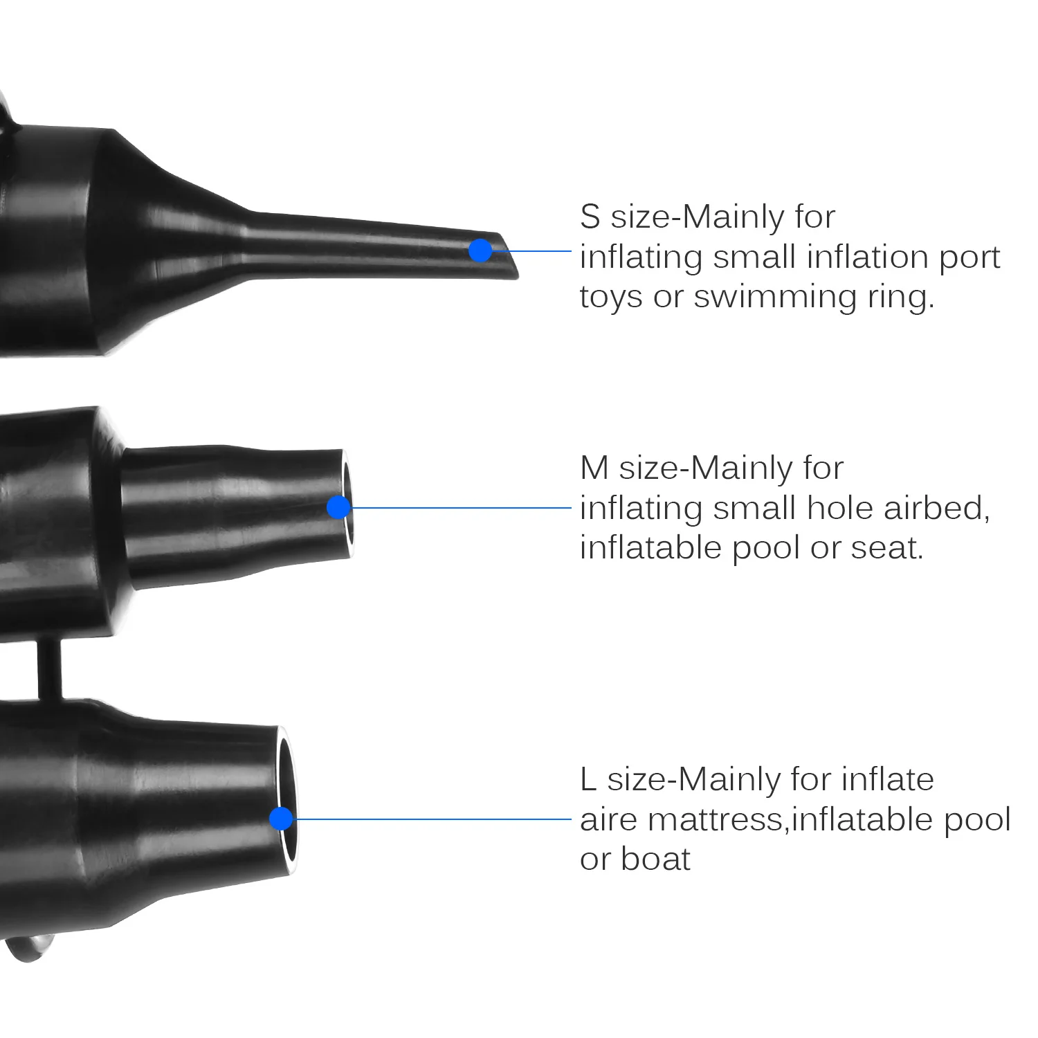 3 насадки позволяют надувать/сдувать с помощью различных элементов, отличный и мощный воздушный насос.
