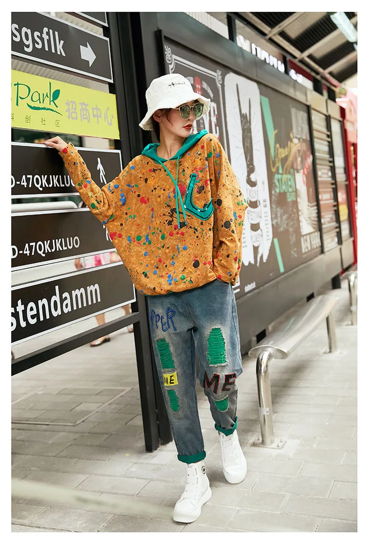 2019 осенне зимние толстовки с буквенным принтом Женская Толстовка Harajuku толстовка