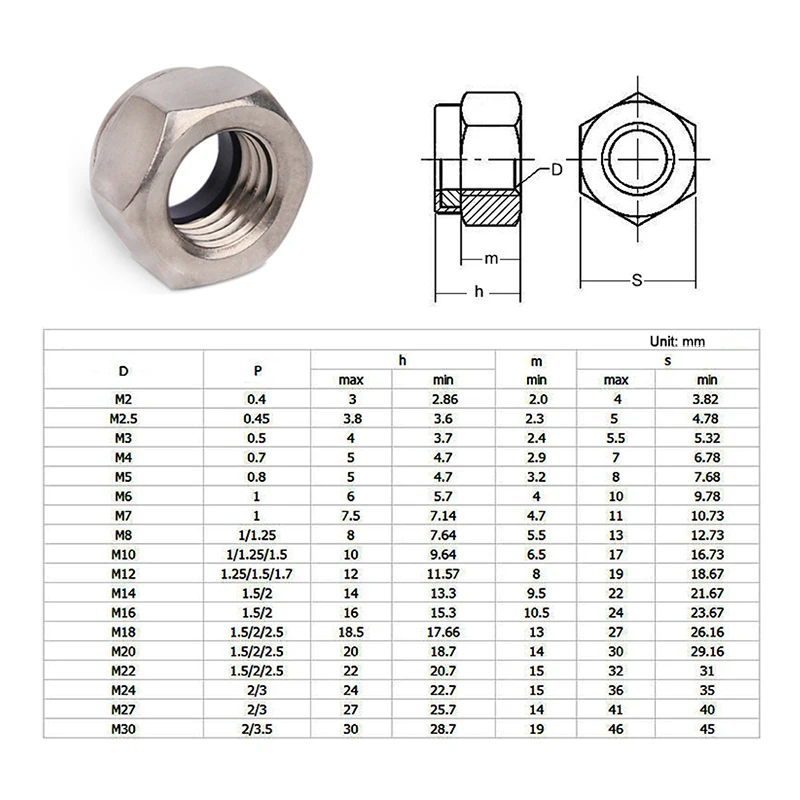 304 нержавеющая сталь преобладающий крутящий момент типа шестигранные гайки