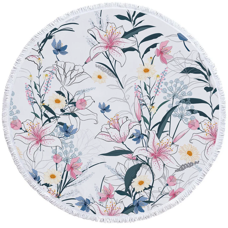 Постельное белье Outlet цветущие цветы круглое пляжное полотенце акварельное