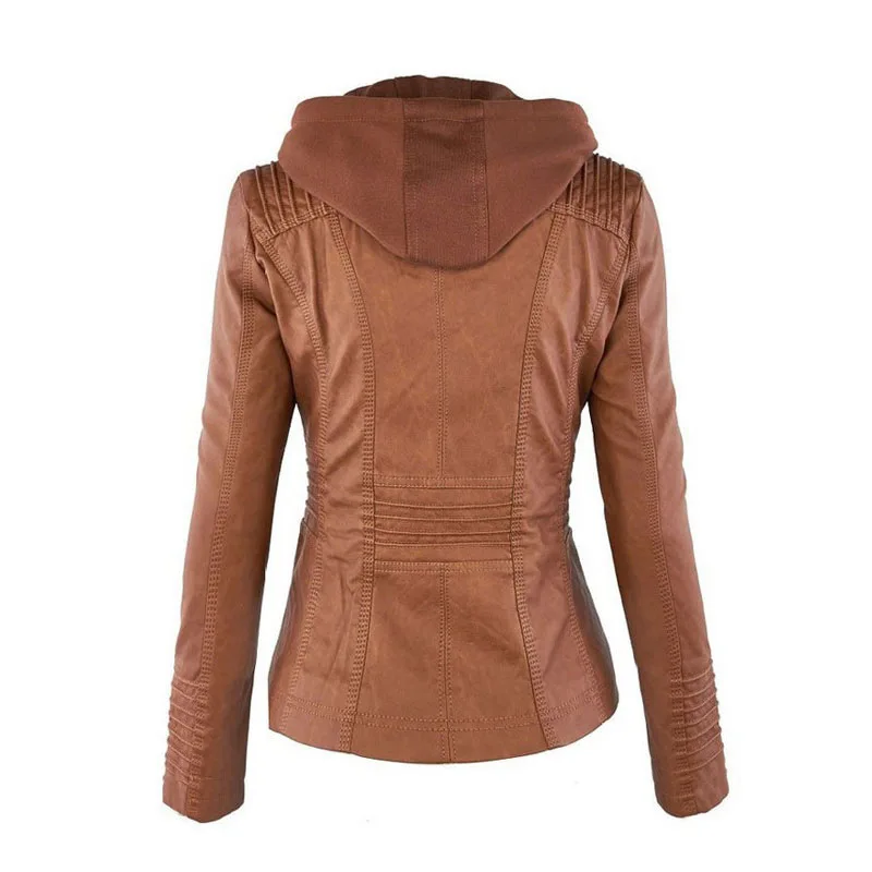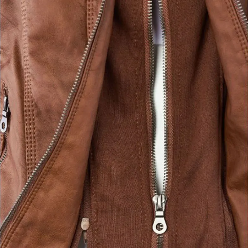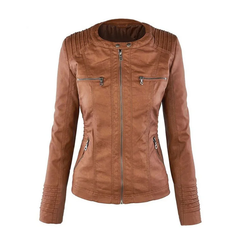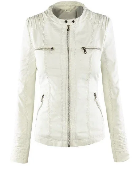 Куртка женская короткая из ПУ кожи с отложным воротником и длинным рукавом |
