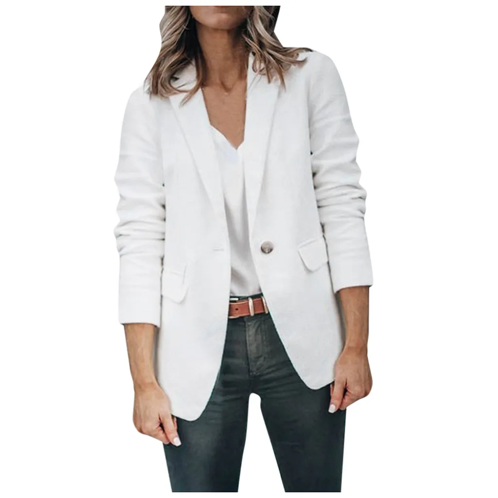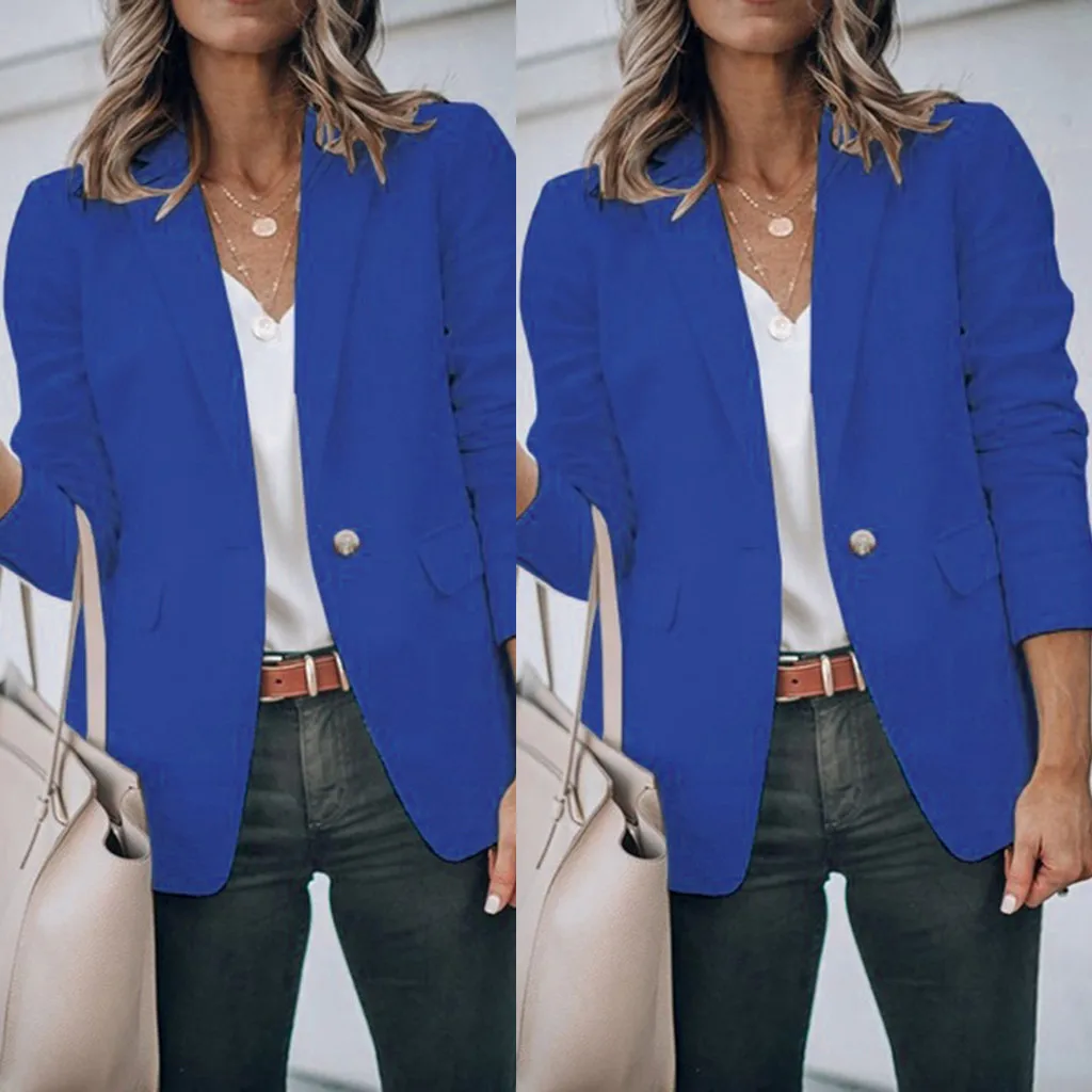 Модная Осенняя Женская Офисная Рабочая однотонная куртка на пуговицах с длинным рукавом