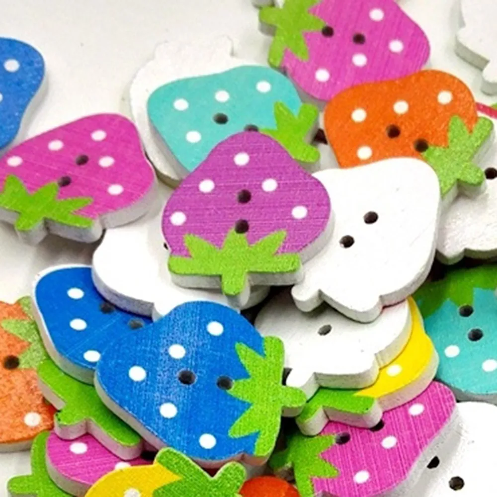 50 шт. Многоцветный Милый Мультфильм клубника деревянные пуговицы с рисунком 2 отверстия шитье ремесло декоративная пуговица DIY одежда для малышей