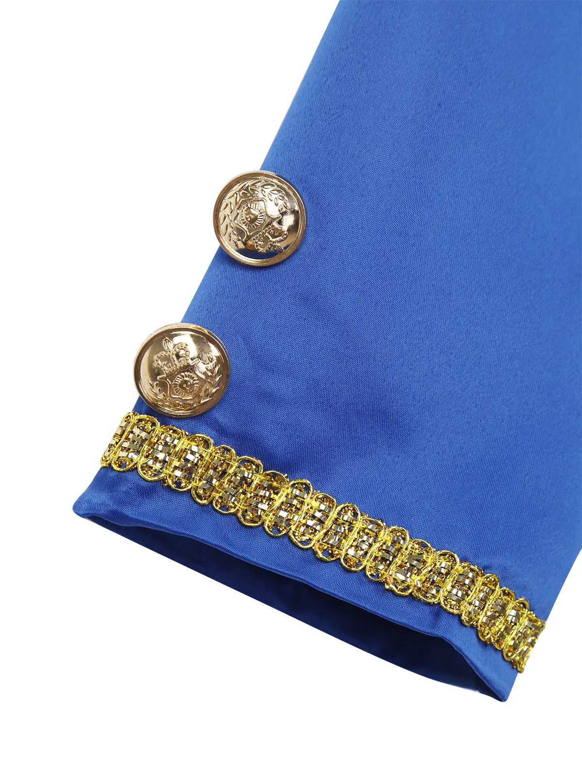 Золотистые плетеные тримминги украшают запястья и вокруг Хвостов. Полностью на подкладке. Костюм с изображением симпатичного принца для вашего мальчика.
