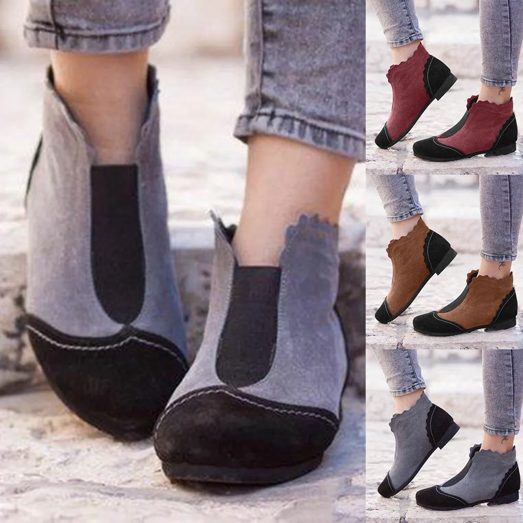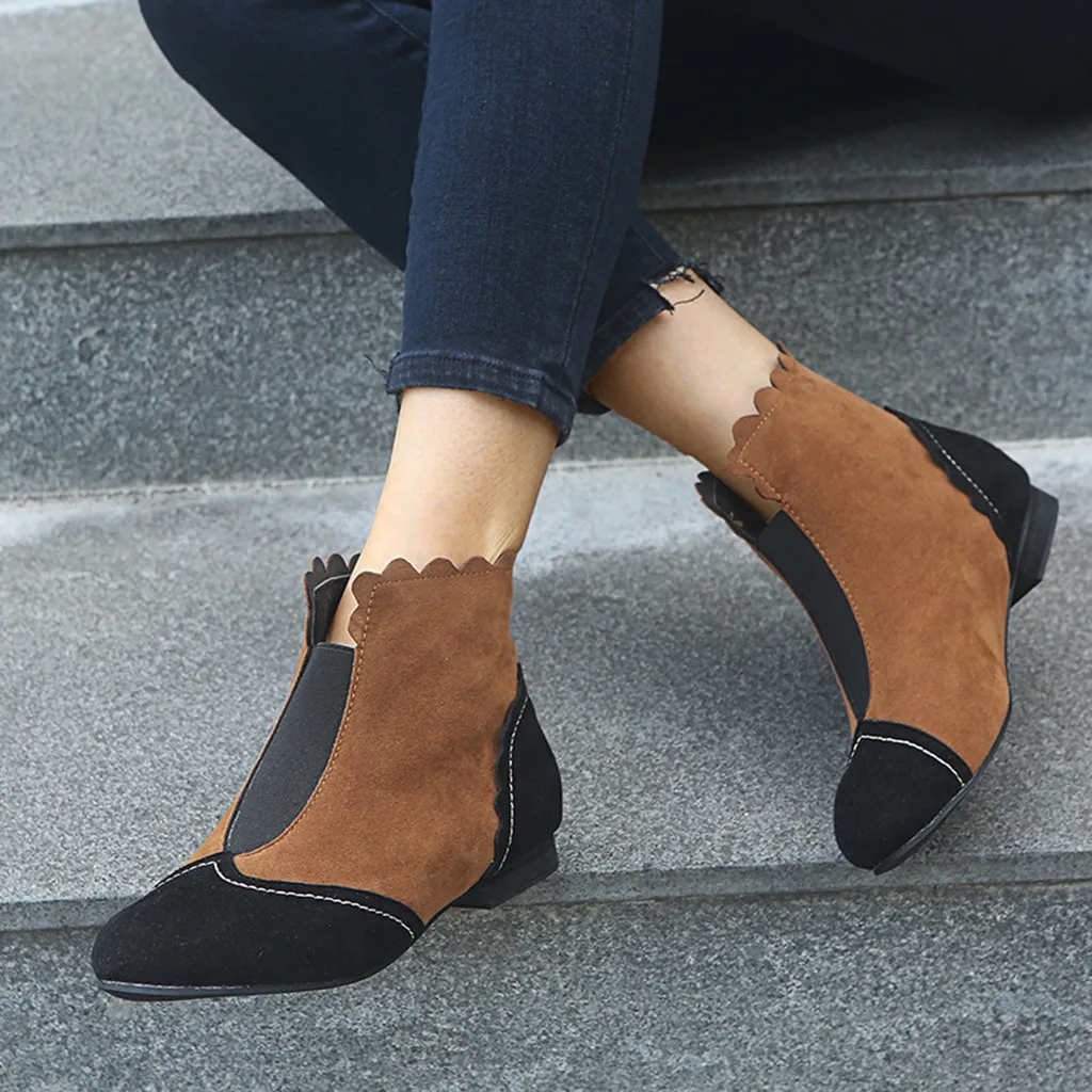 Женские Модные Разноцветные полусапожки в римском стиле ретро; обувь без шнуровки на низком каблуке
