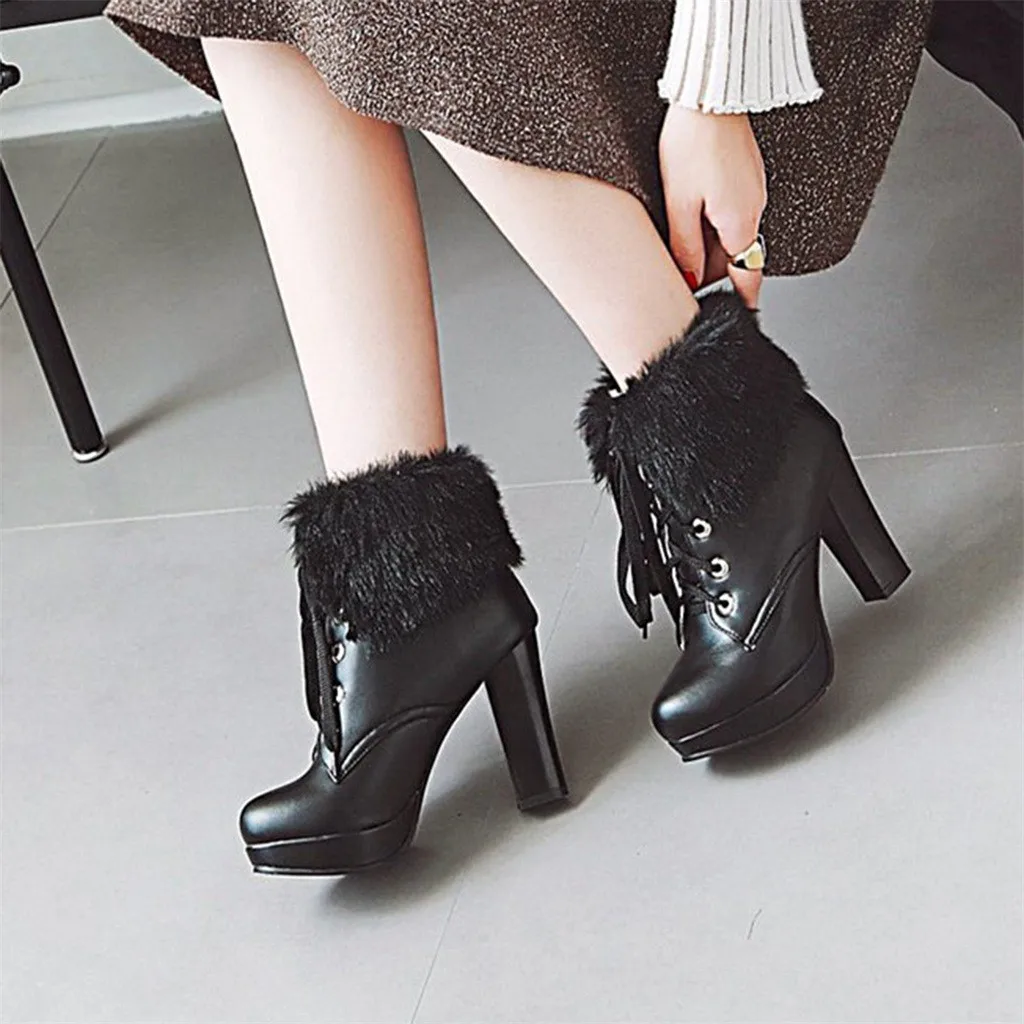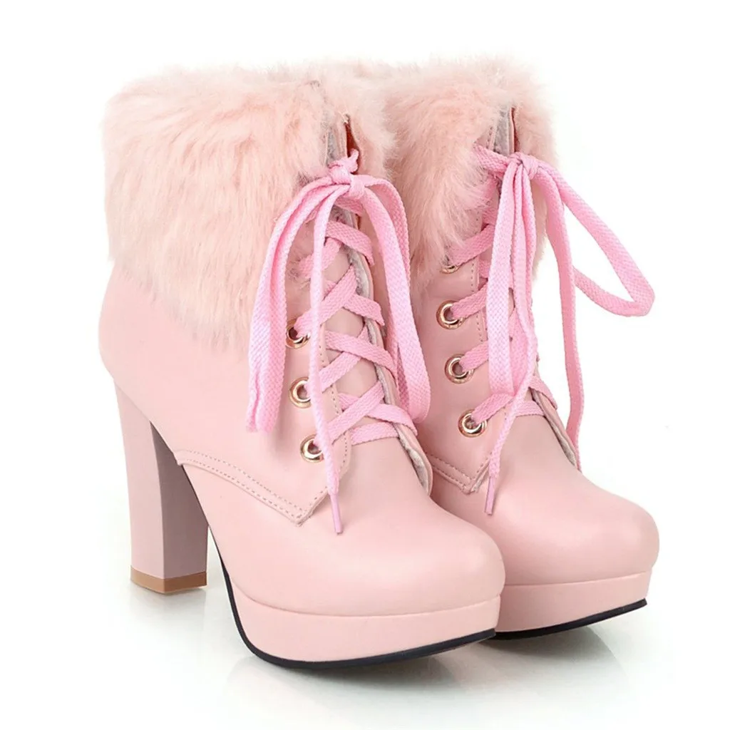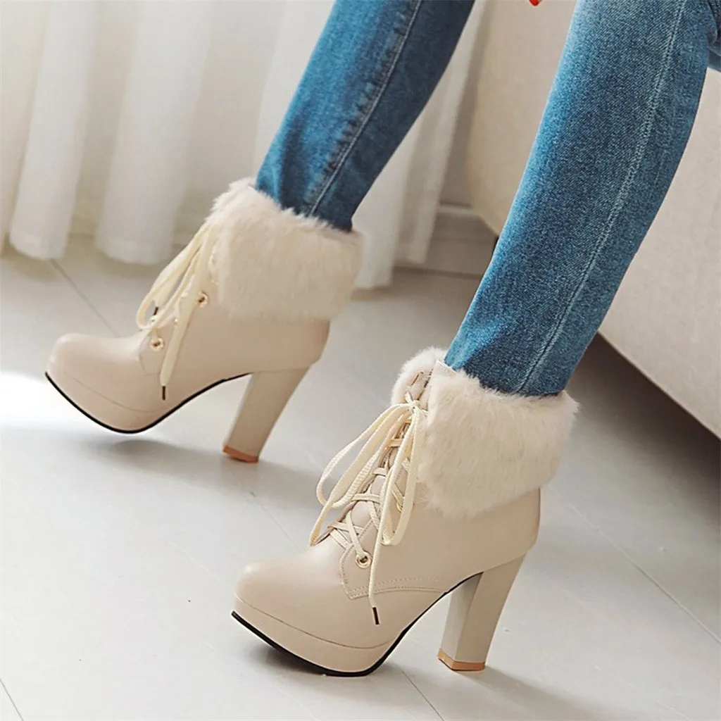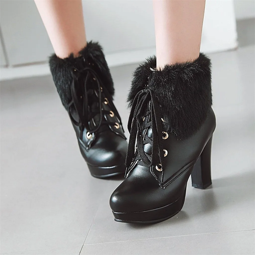 Женские шерстяные ботинки; милые зимние ботильоны на высоком каблуке и платформе со шнуровкой и круглым носком
