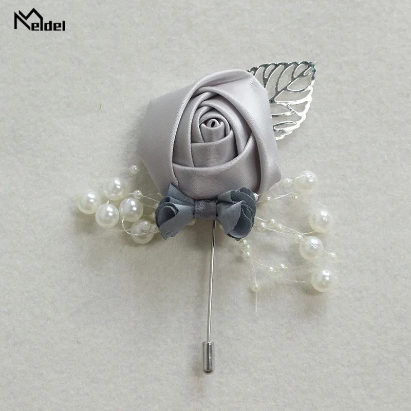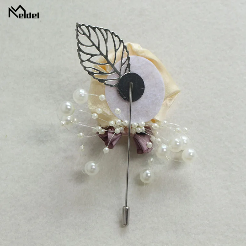 Мелдель Прямая поставка Мужская бутоньерка, роскошная бутоньерка Роза для Жених Сделай Сам свадебный цветок поддельная жемчужная брошь для вечеринки Выпускной корсаж Бутоньерка
