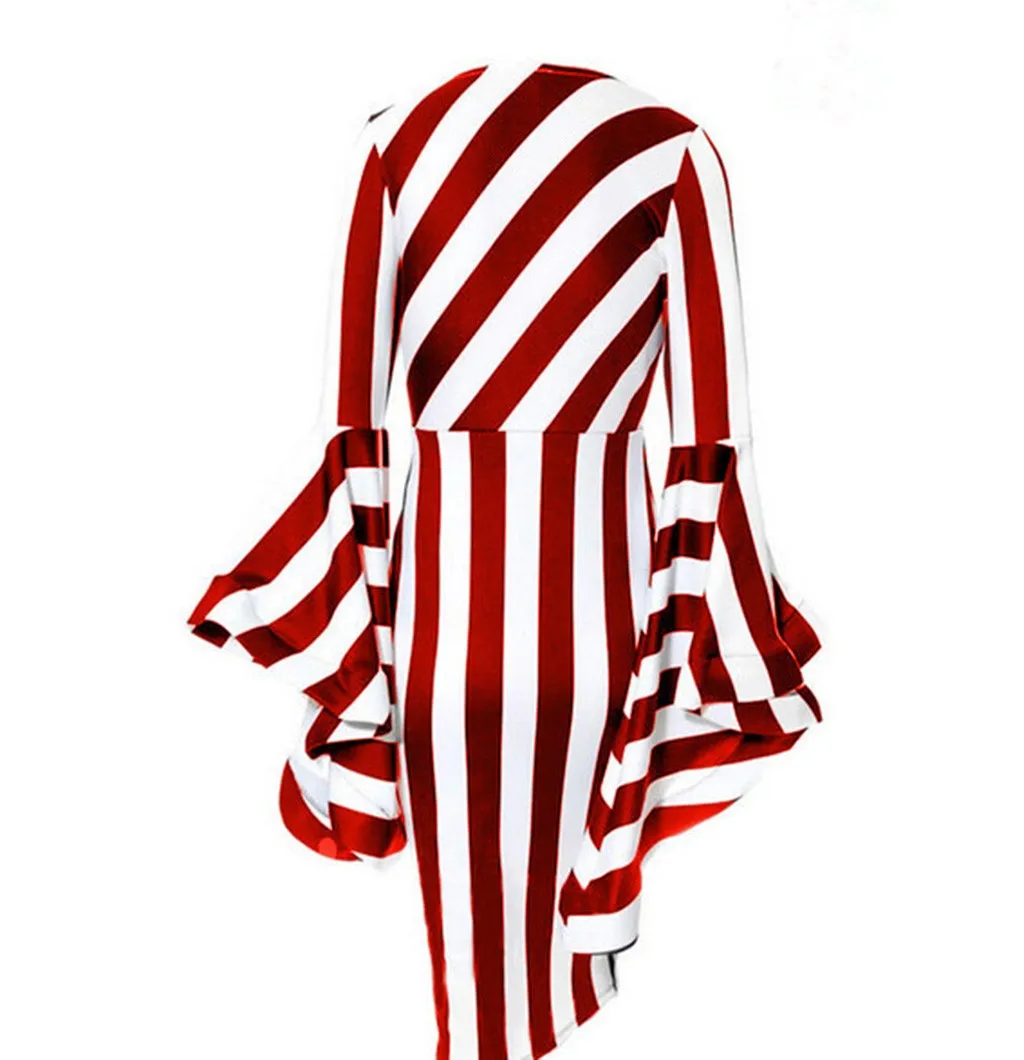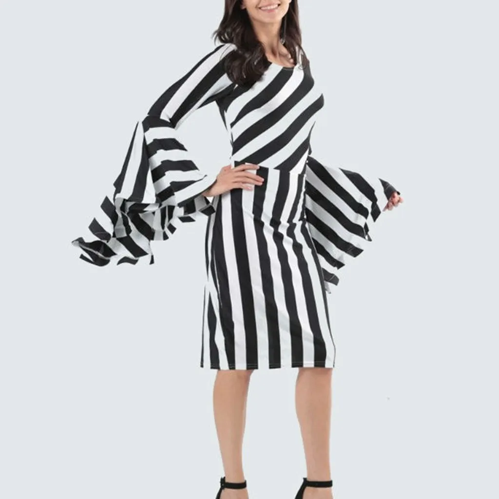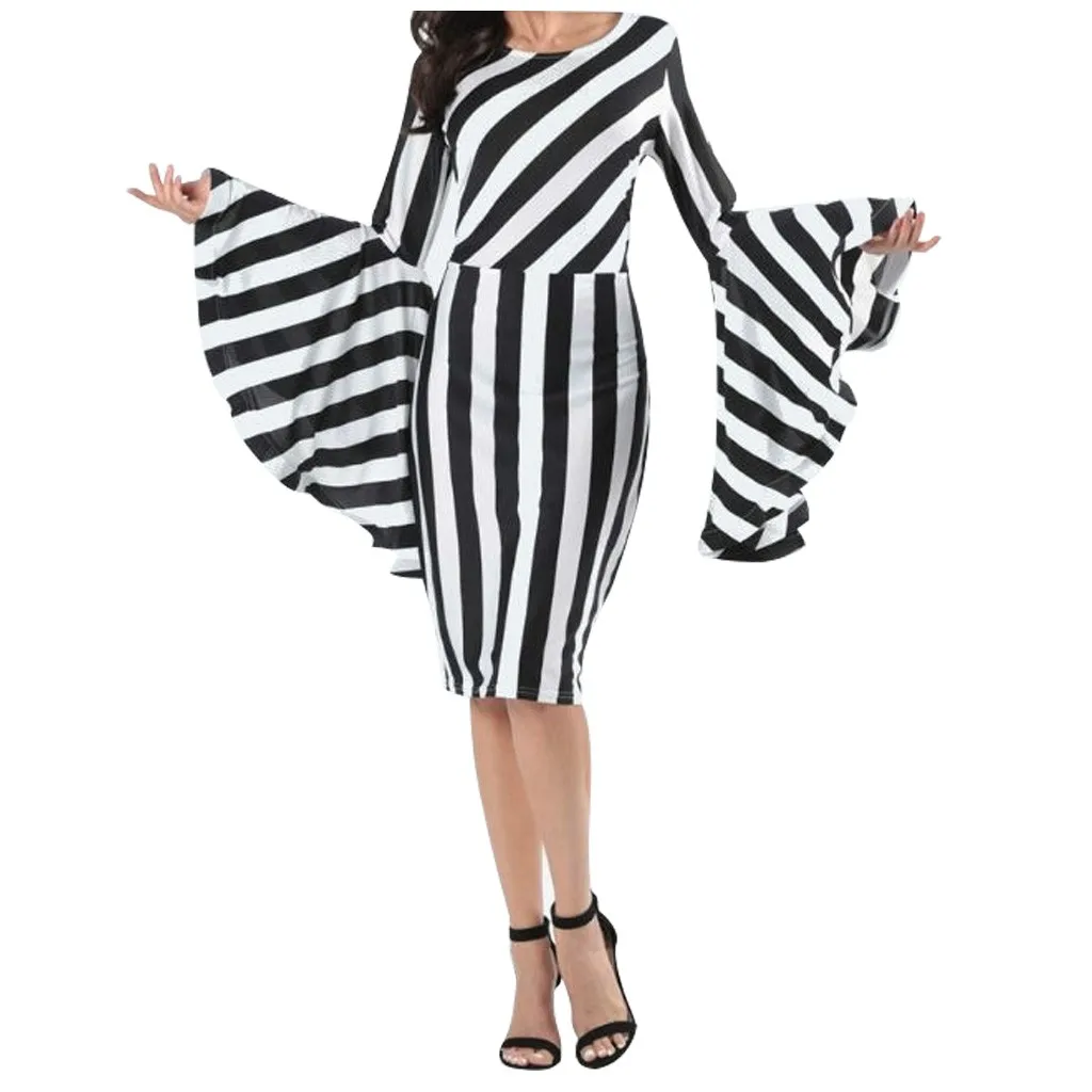Женское платье с длинным Расклешенным рукавом размера плюс, свободное Полосатое платье с круглым вырезом и принтом