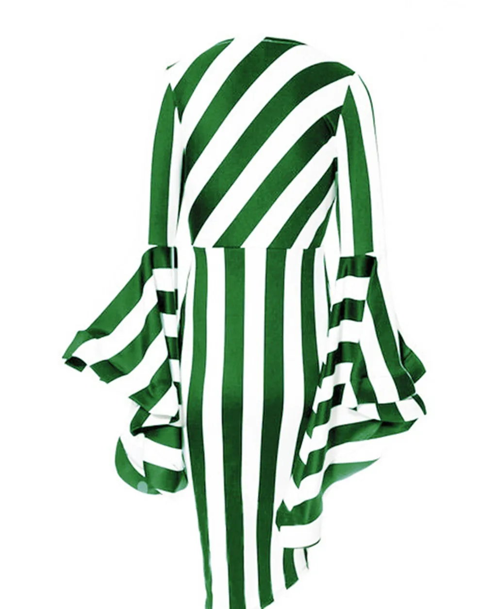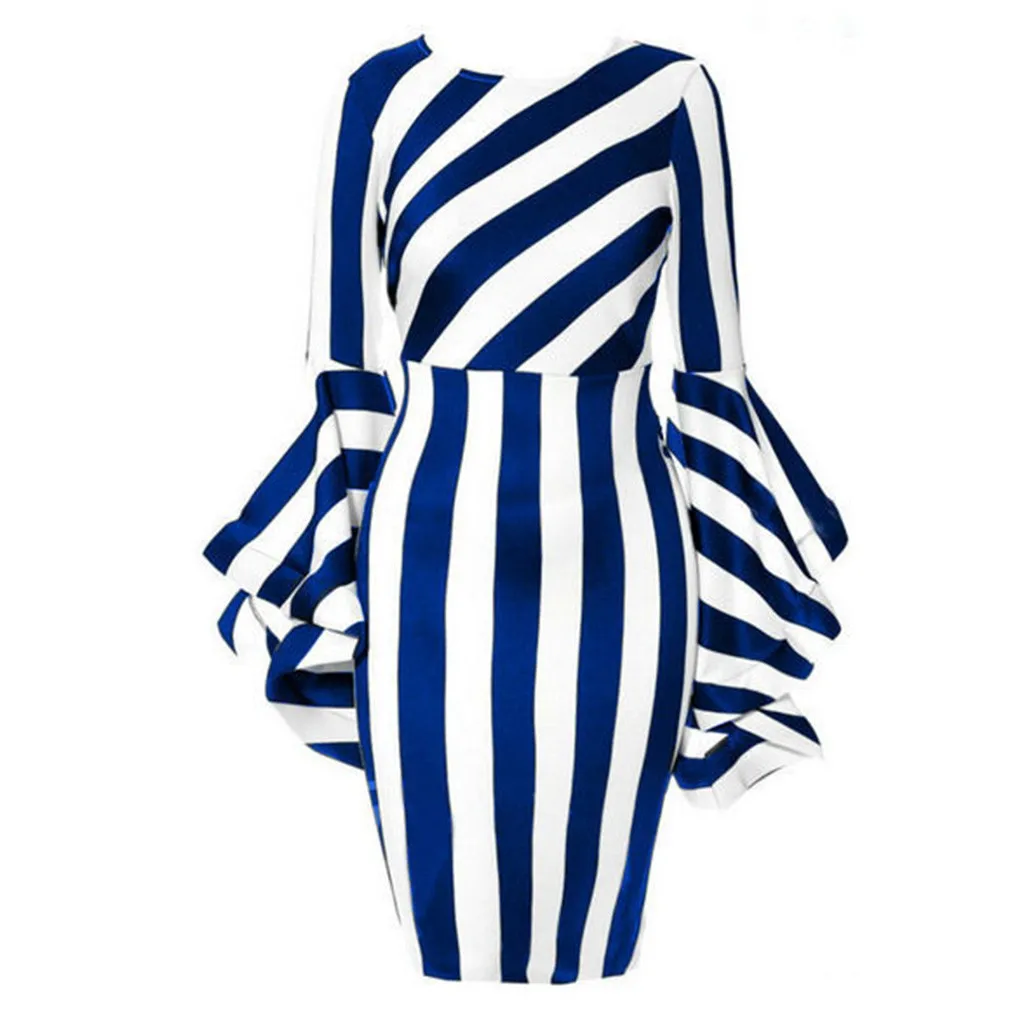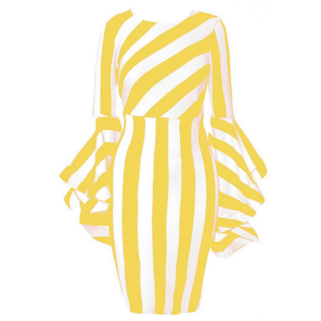 Женское платье с длинным Расклешенным рукавом размера плюс, свободное Полосатое платье с круглым вырезом и принтом