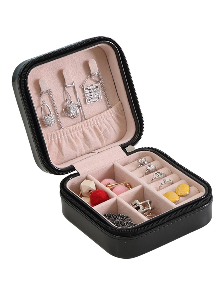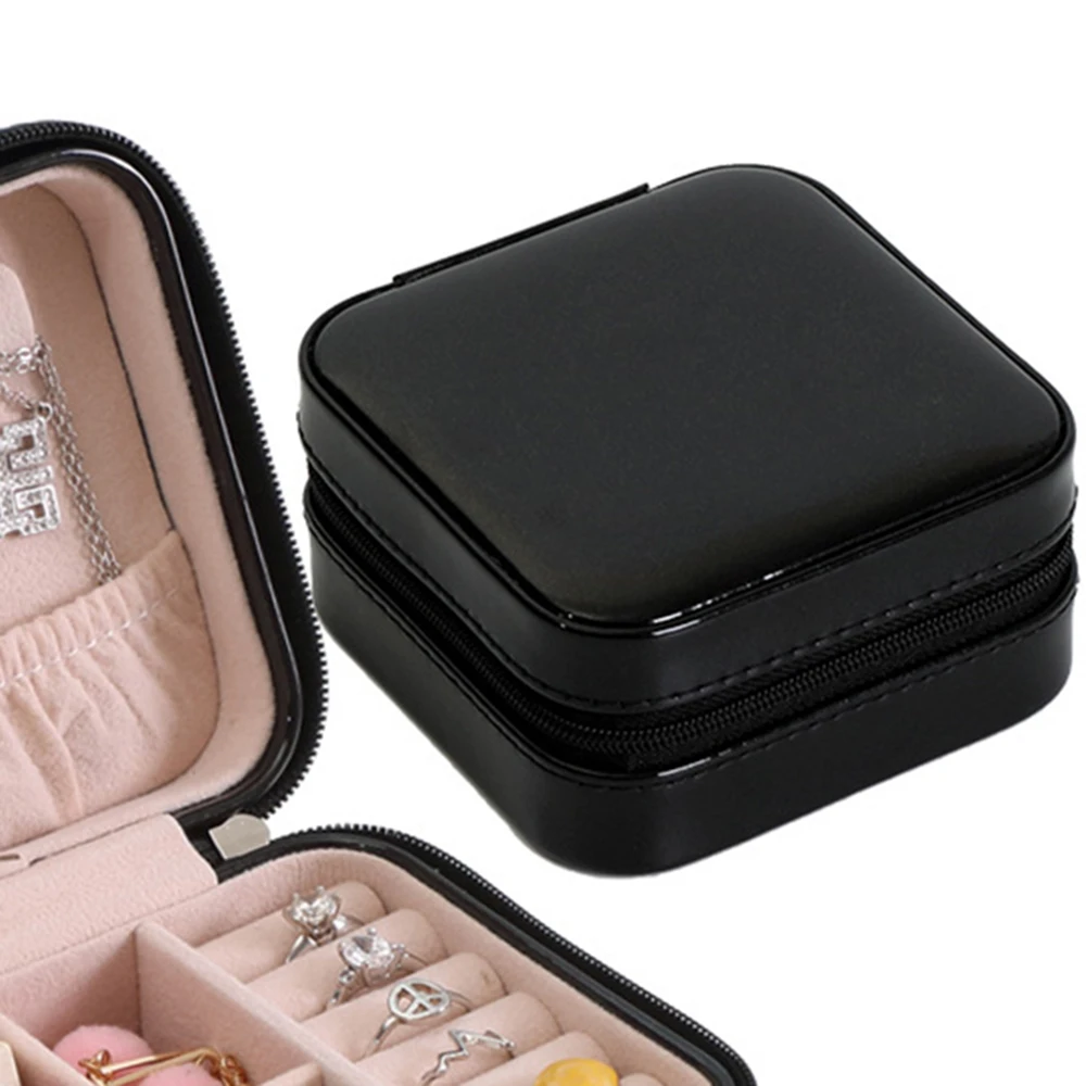 PU однослойный простой креативный ящик для хранения портативные серьги кольцо коробка подарки на день рождения розовая дорожная шкатулка для бижутерии на молнии