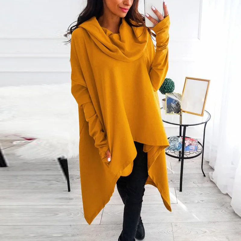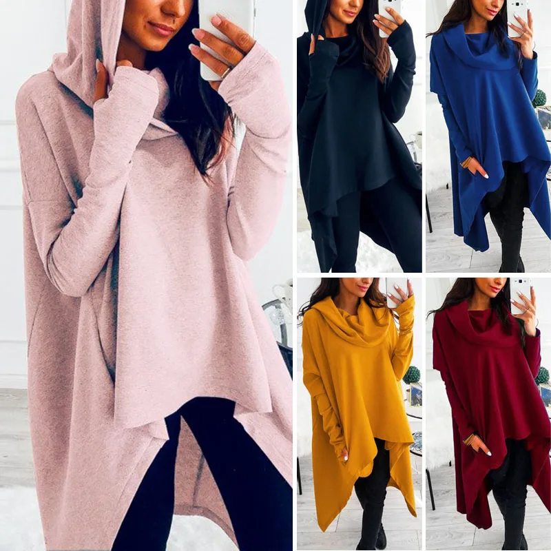 *Item Description: Women Pullover Hoodies Sweatshirts Irregular Large Swing Long Sleeve Solid Color