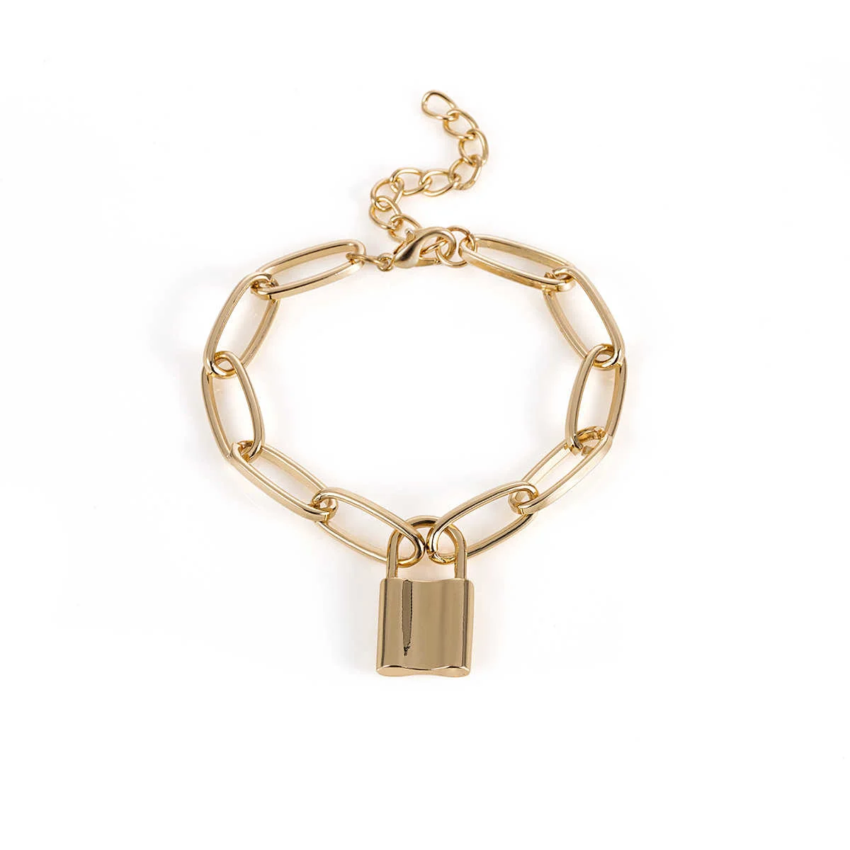 Название: Lacteo панк золотой браслет с замком, браслет с подвеской, женский модный регулируемый браслет с цепочкой из сплава, Женские Ювелирные изделия Цвет: Золотой/Серебряный Вес: 20,4 г Материал: сплав Стиль: Браслет-подвеска золотого цвета в стиле панк Повод: вечерние/пляжные/Повседневные Размер: как на картинке