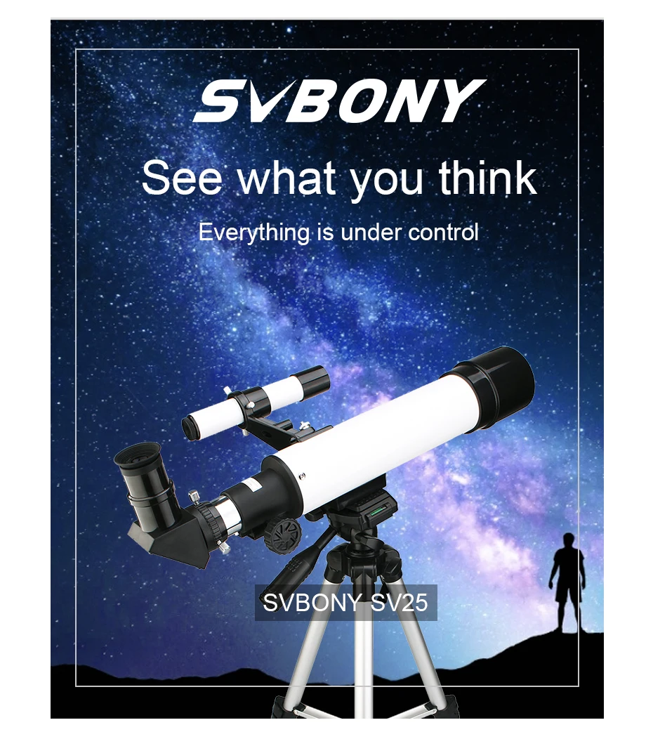 SVBONY 60420 компактный детский рефрактор телескоп для путешествий с алюминиевым штативом и оптический видоискатель 2,4 "/60 мм рефракционный телескоп обеспечивает яркое и детальное изображение, которое идеально подходит для просмотра как сухопутных, так и небесных объектов Поставляется с 2 окулярами, которые обеспечивают увеличение средней и высокой мощности для просмотра широкого спектра объектов Включает оптический видоискатель 5x20 для поиска объектов, которые вы хотите увидеть