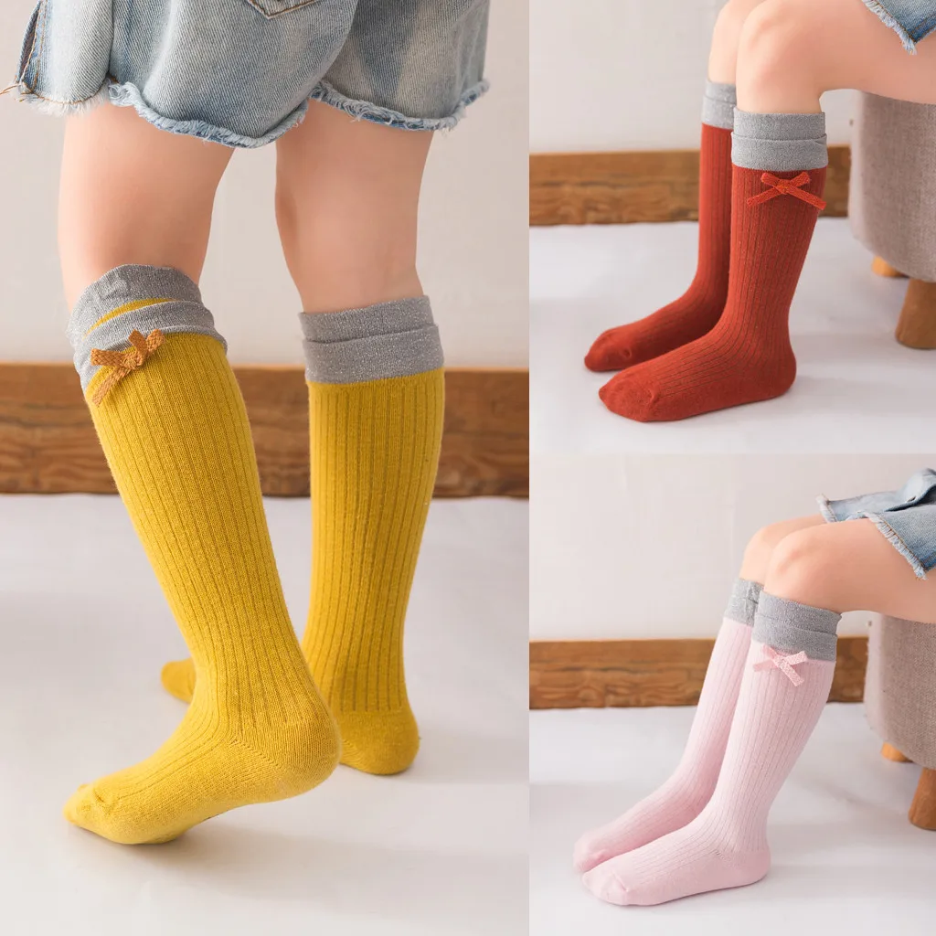 Детские однотонные Нескользящие вязаные длинные носки для маленьких мальчиков и девочек гольфы