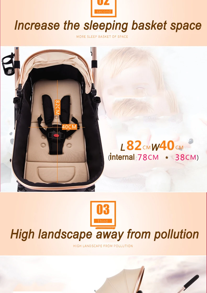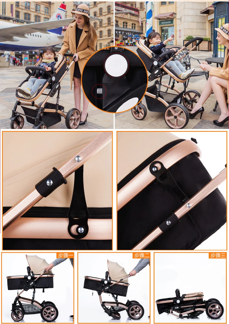 Регулируемая легкая Роскошная детская коляска 3 в 1 переносная Двусторонняя с