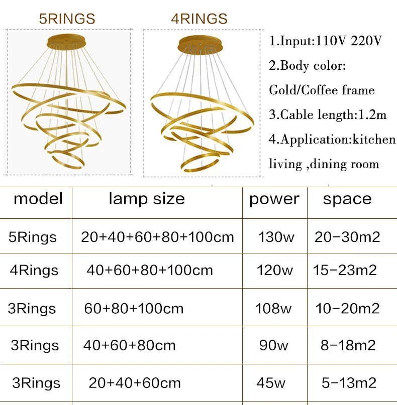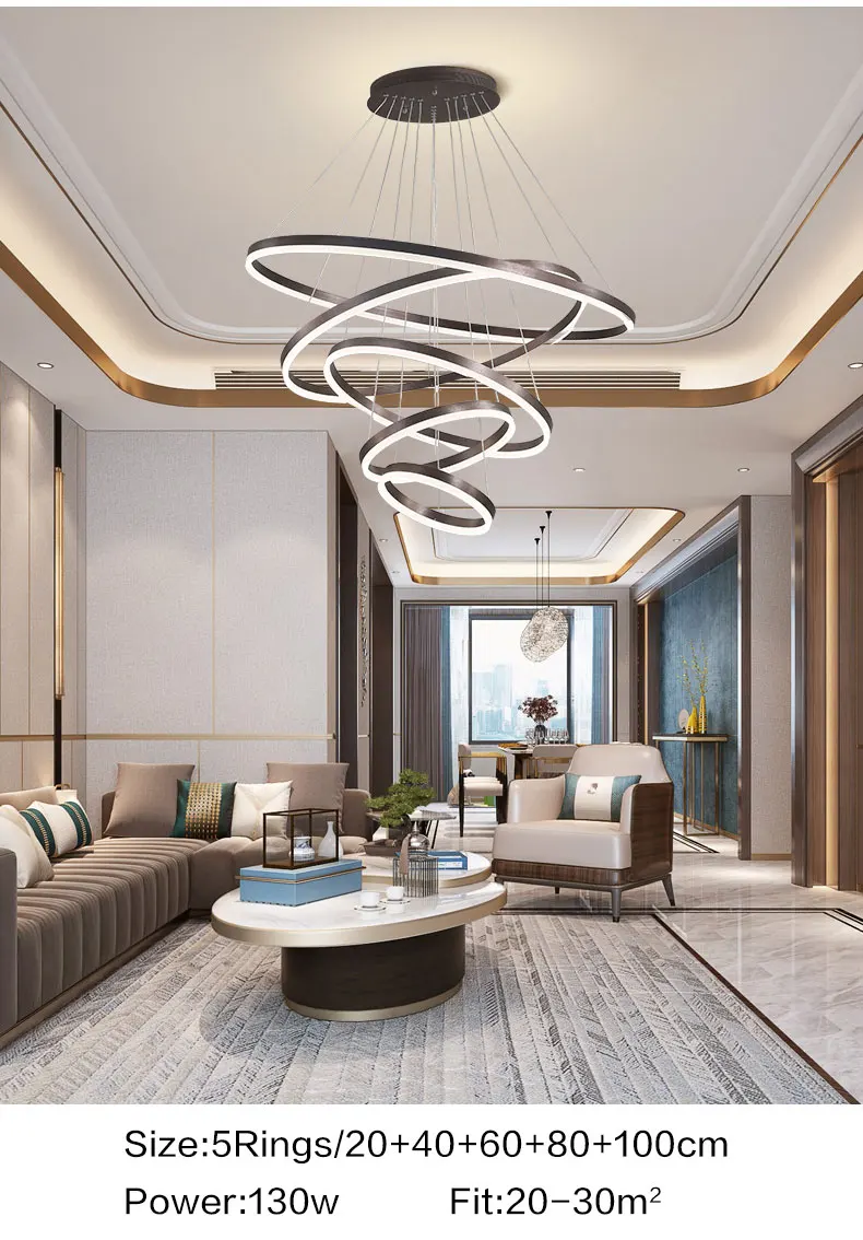 Crile светодиодная Люстра для гостиной 40 60 80 60 40 см 5 колец теплый белый без пульта дистанционного управления, холодный белый без пульта дистанционного управления