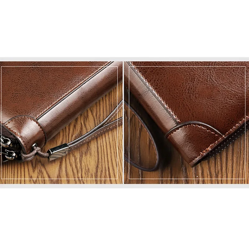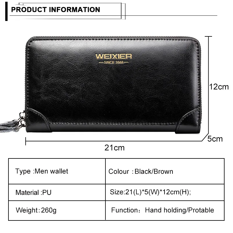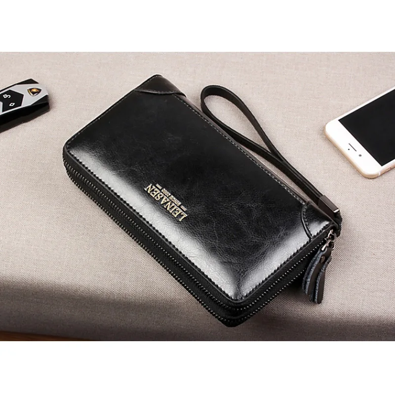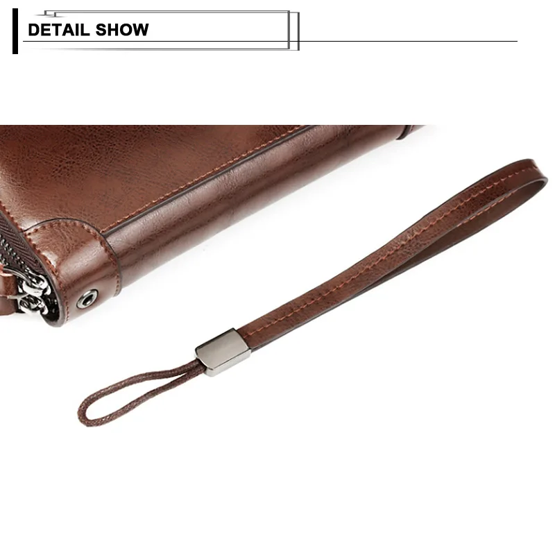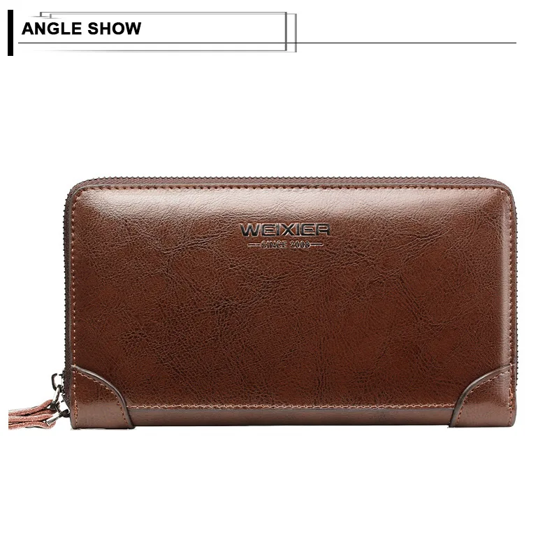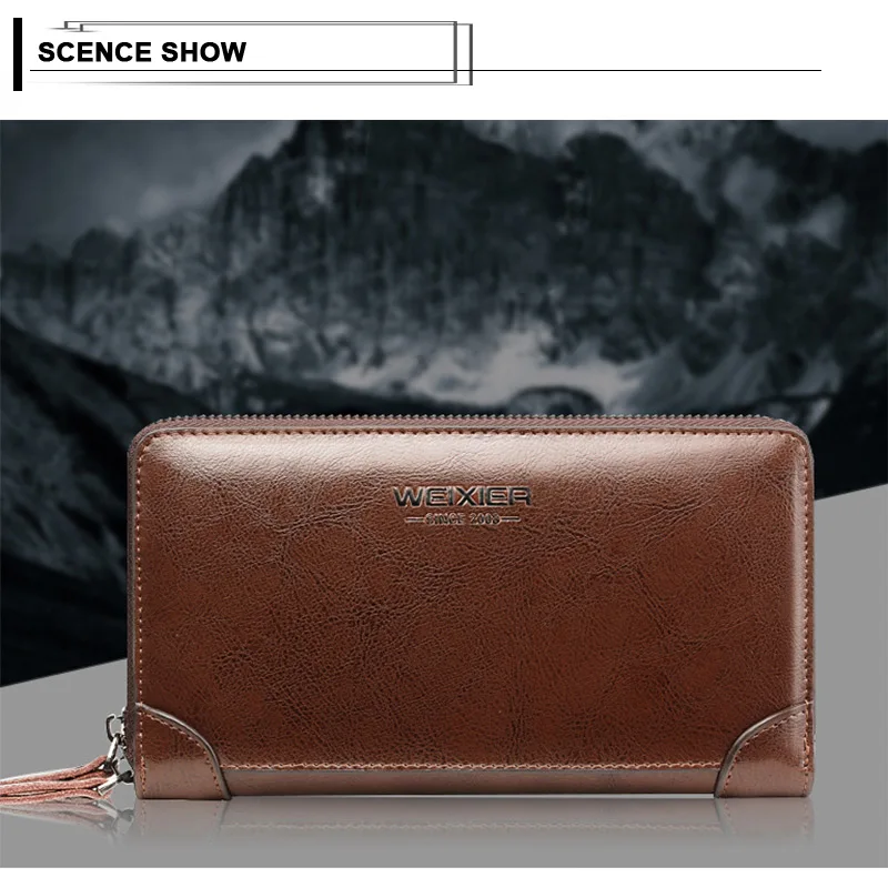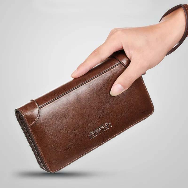 Мужской длинный кожаный кошелек, держатель для карт, кошелек на молнии с окошком для удостоверения личности