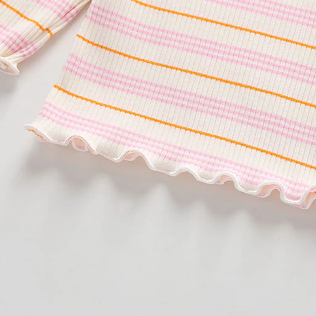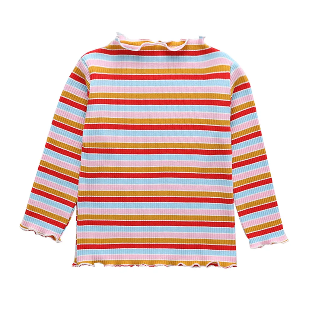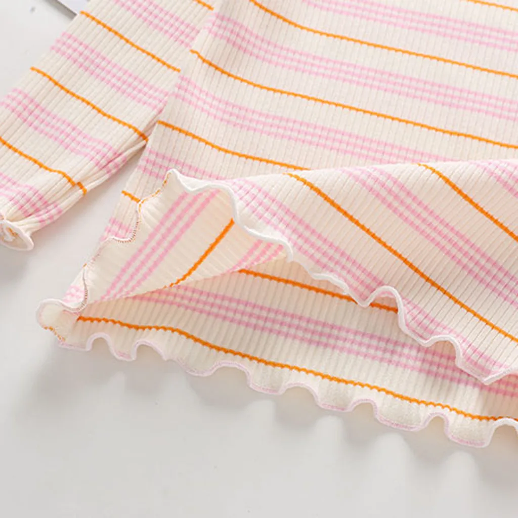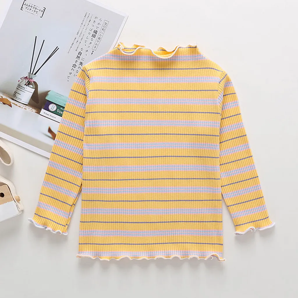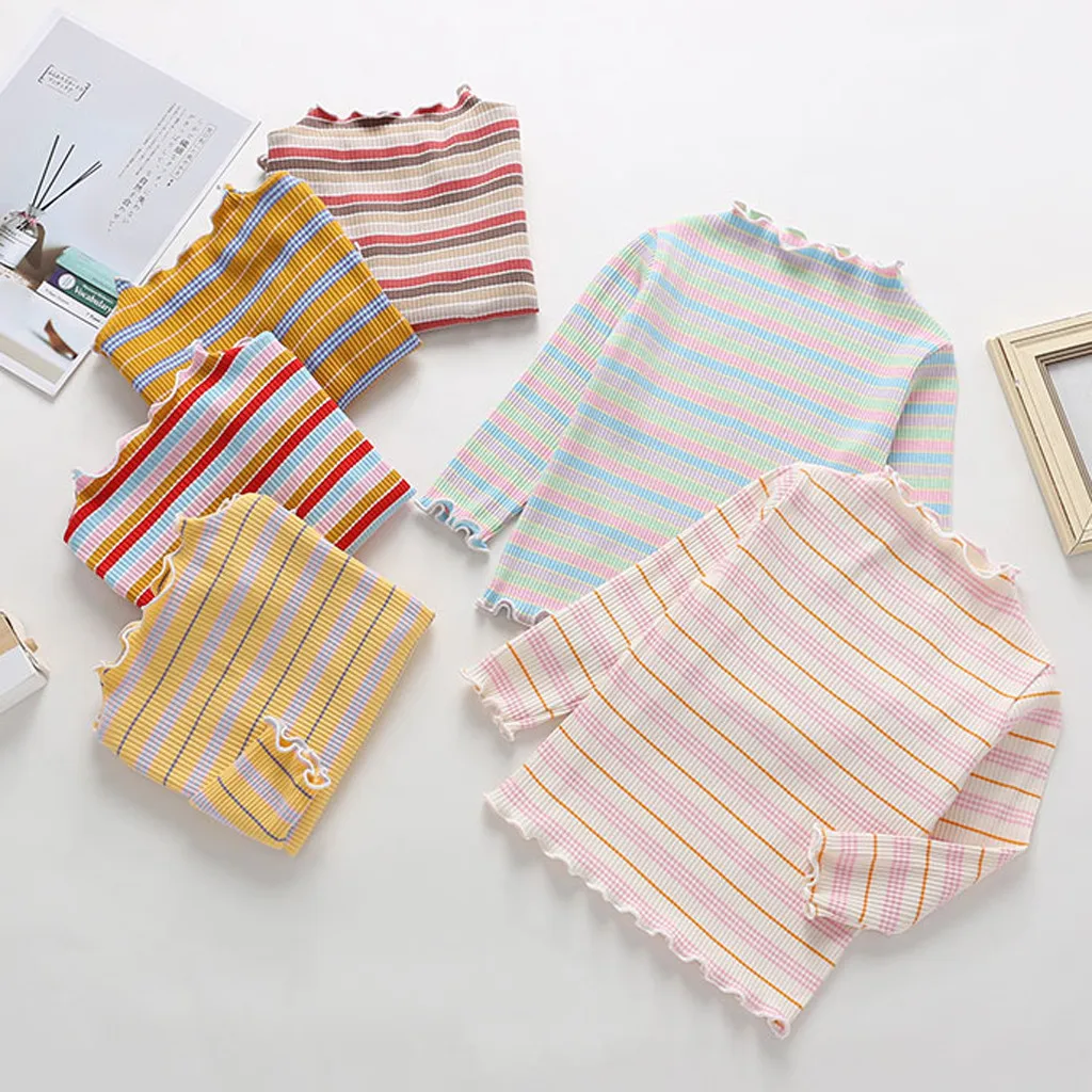 Топы в полоску с рюшами для маленьких девочек; футболка; повседневная одежда
