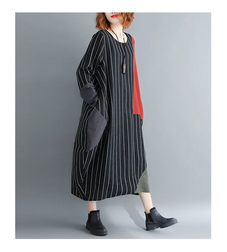 BelineRosa Осенний Стиль Европейский Повседневная Полосатый Хлопок Льняные Платья С