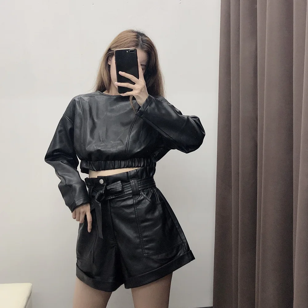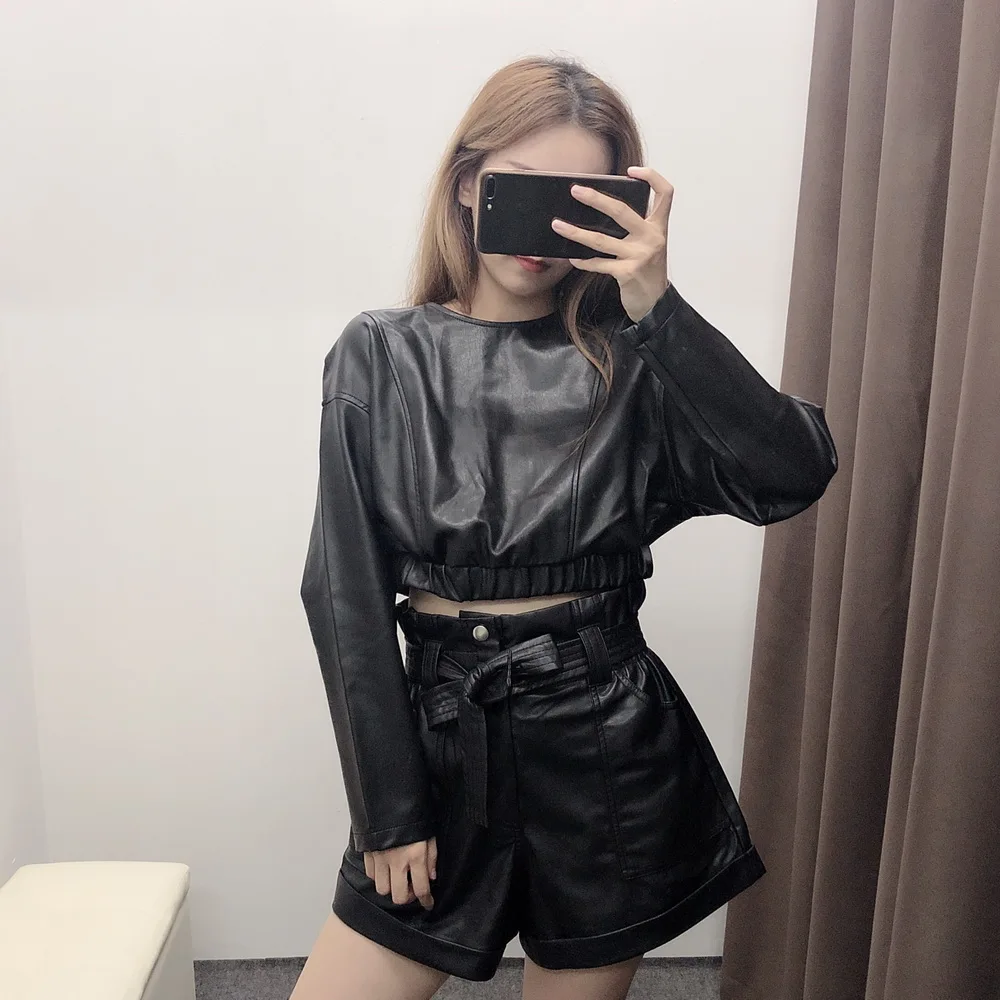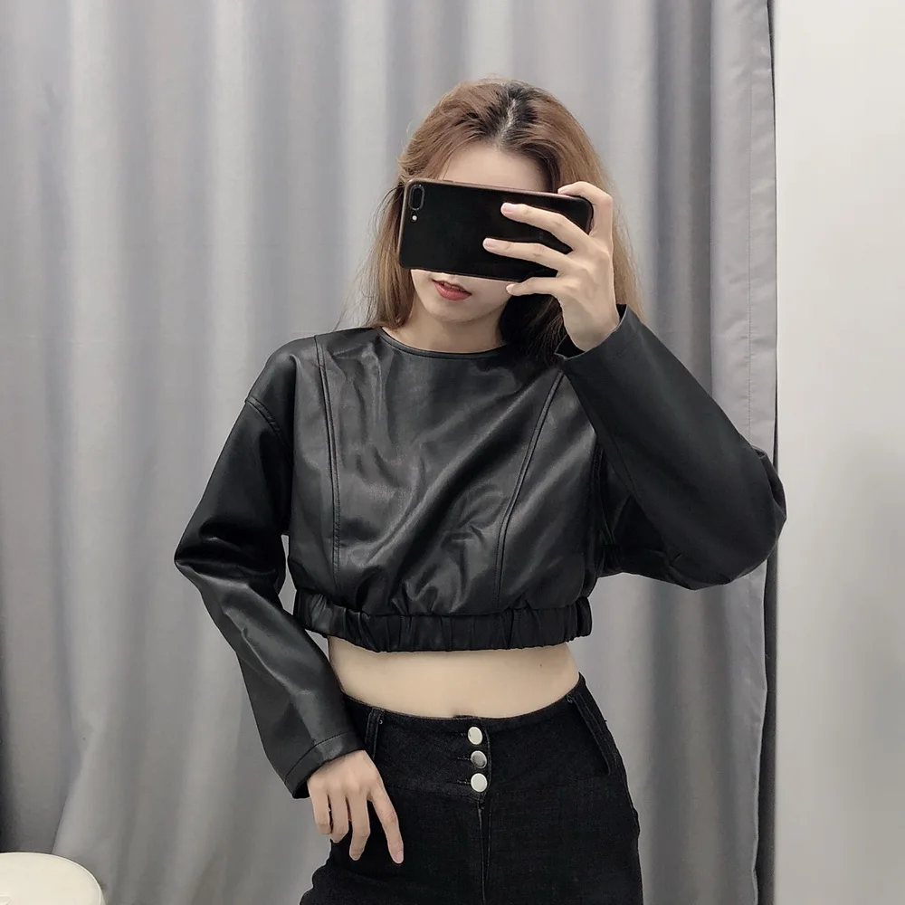 Женский Модный укороченный топ из искусственной кожи XS S M L Кожаный чехол