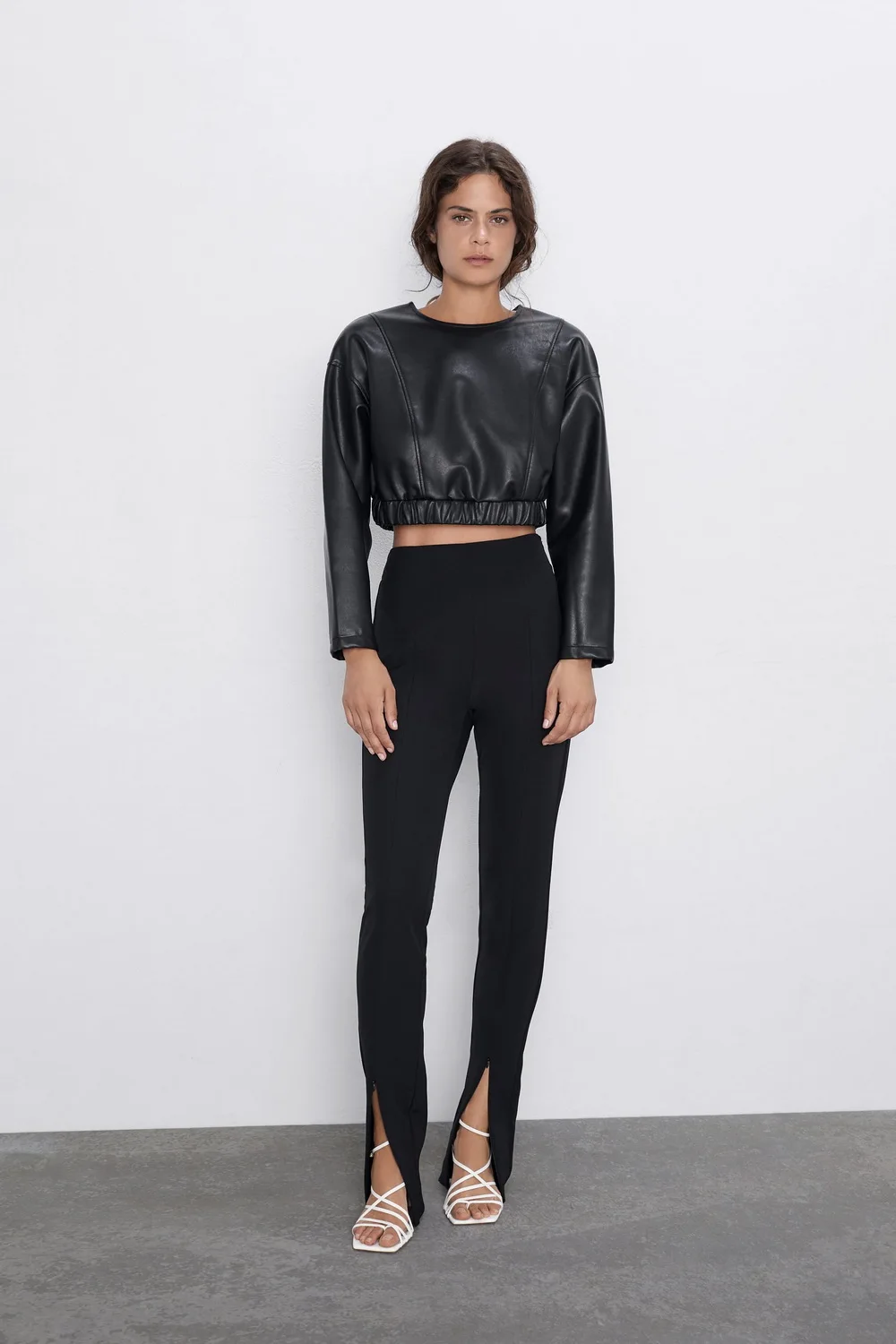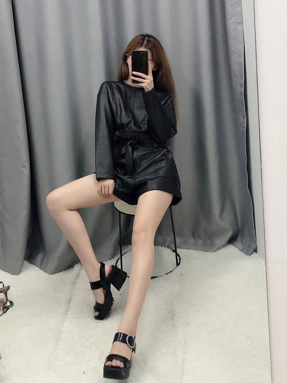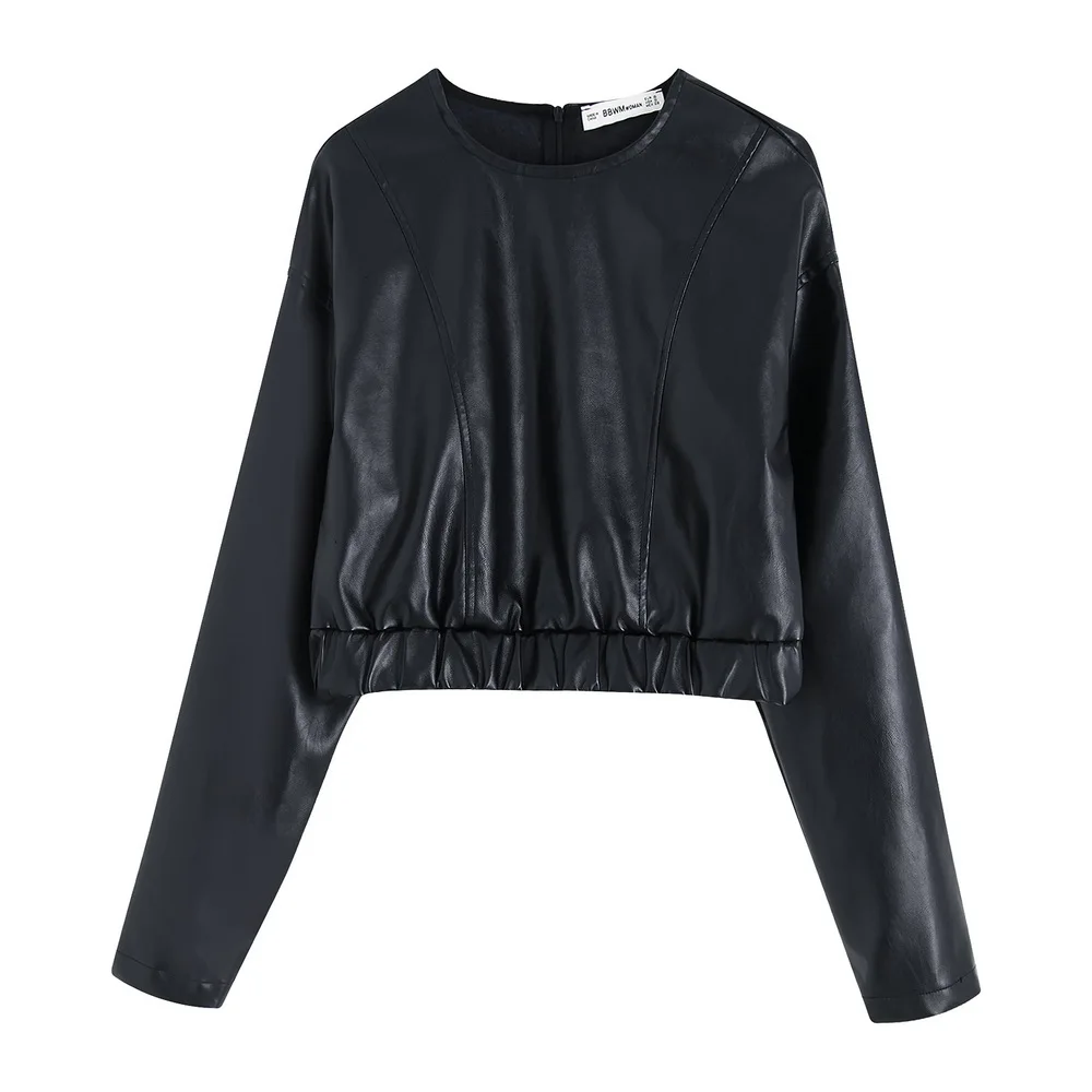 Женский Модный укороченный топ из искусственной кожи XS S M L Кожаный чехол