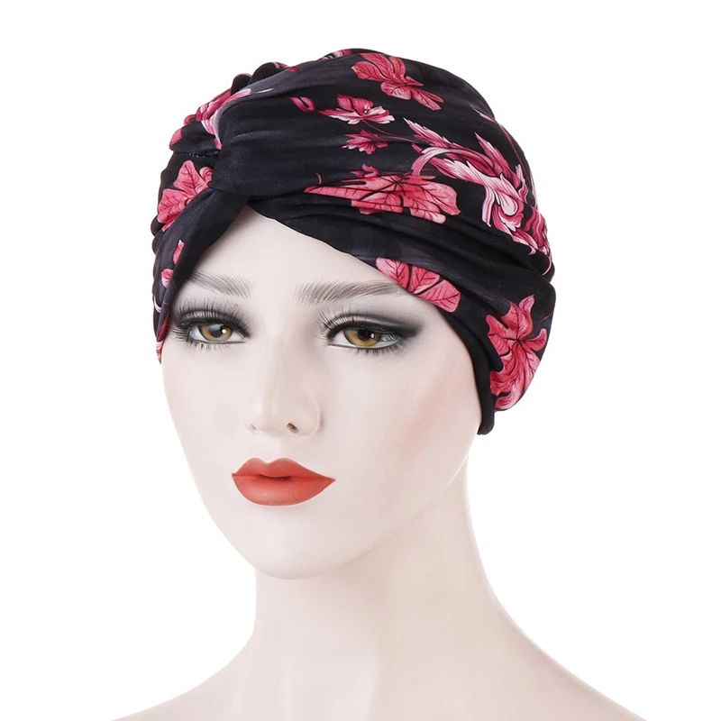 Женская набивная мусульманская хиджаб крест завязанная Кепка chemo Beanie шарф Тюрбан, повязка на голову
